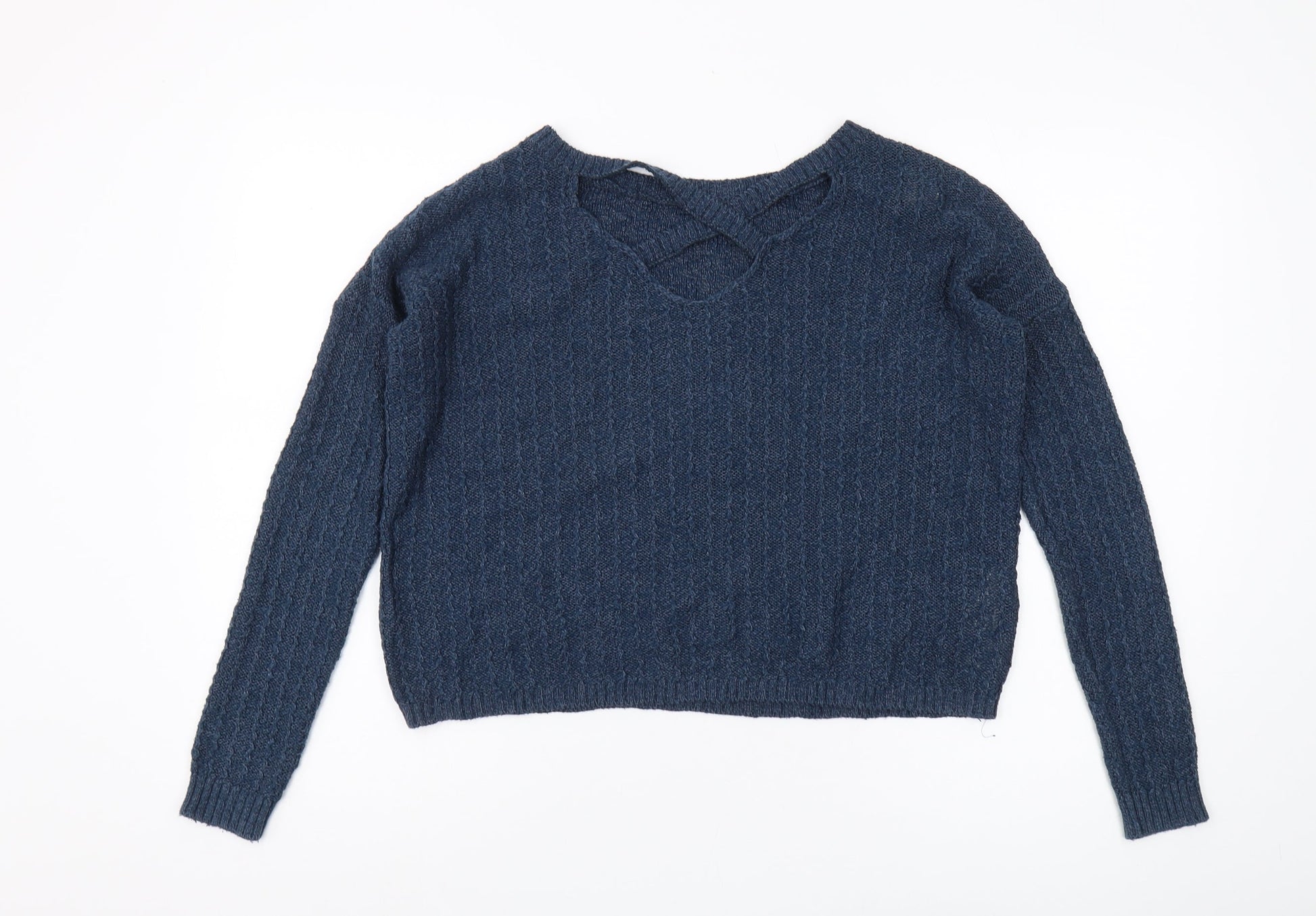 Hollister Women's Blue Cable-Knit Jumper - Size S