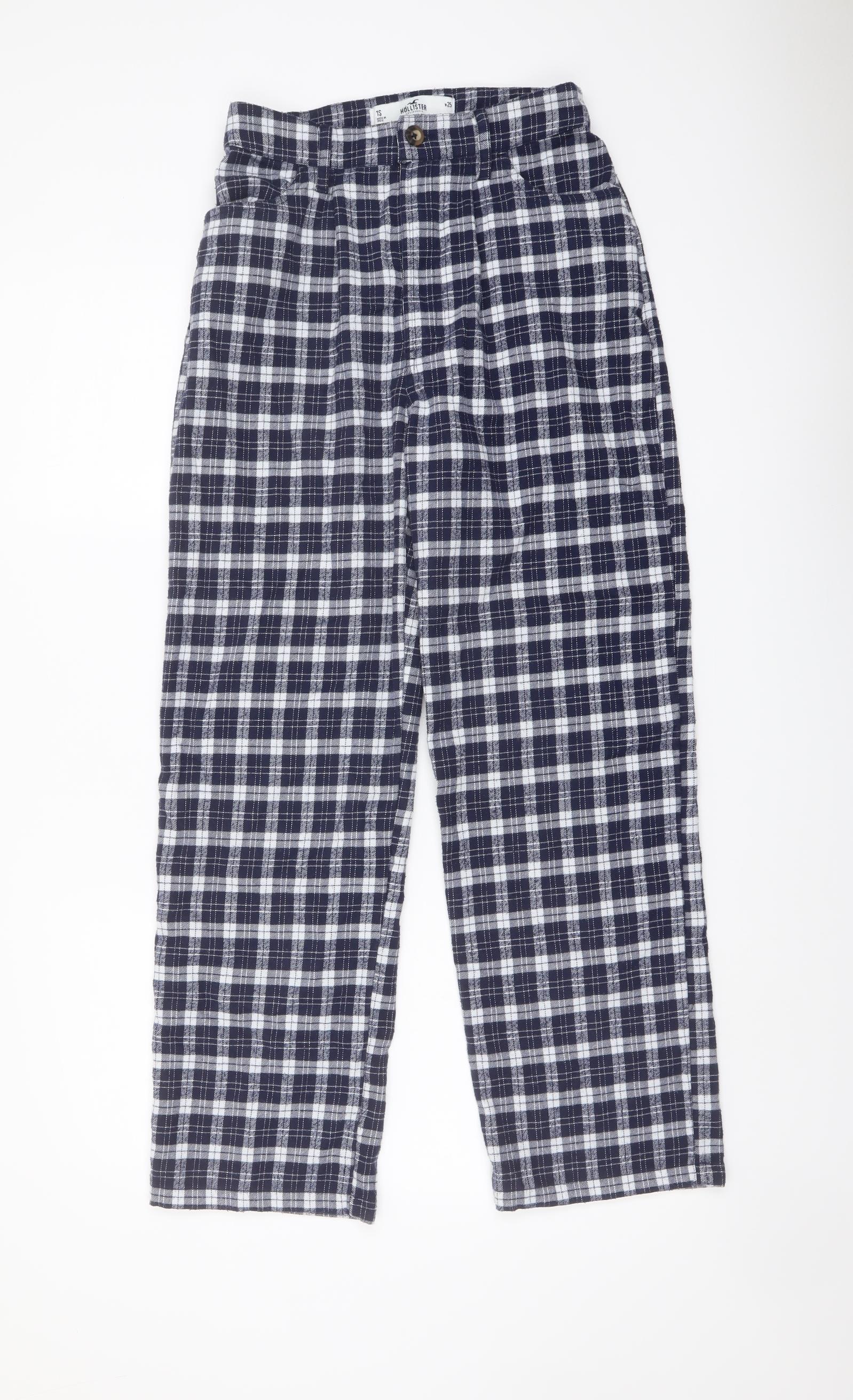 Hollister Womens Blue Plaid Polyester Trousers Size S L27 in Regular Zip