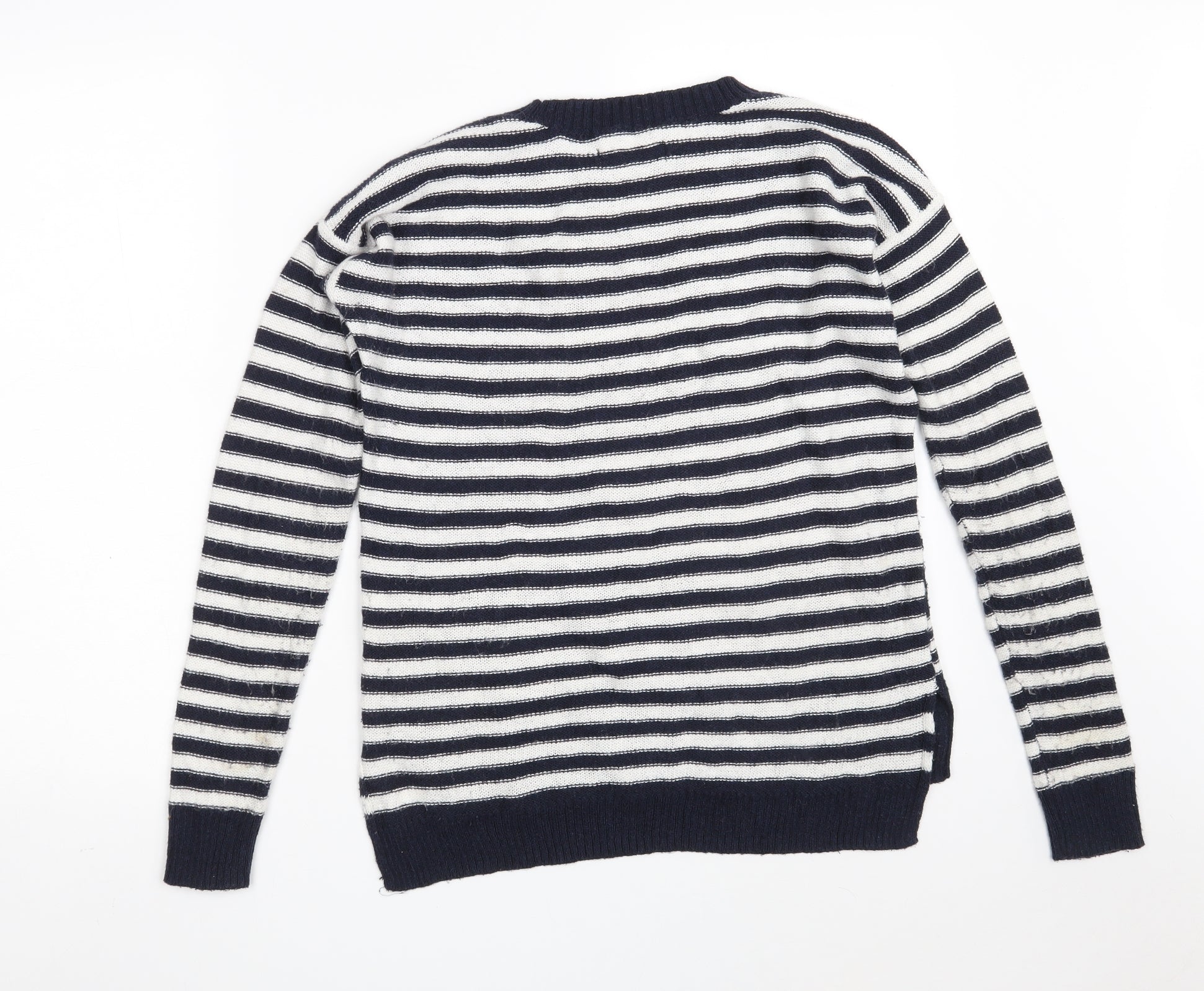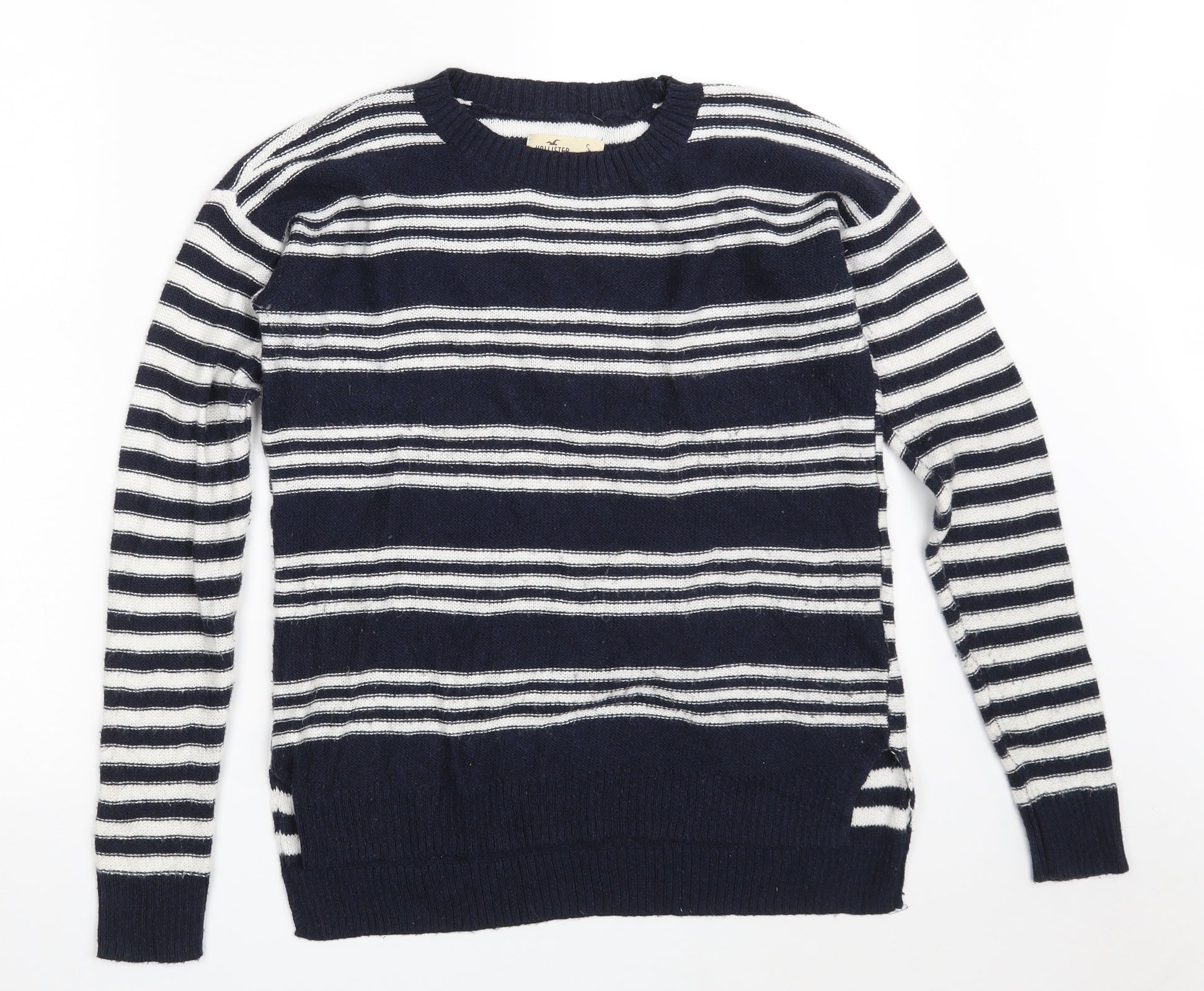 Hollister Womens Blue Round Neck Striped Acrylic Pullover Jumper Size S