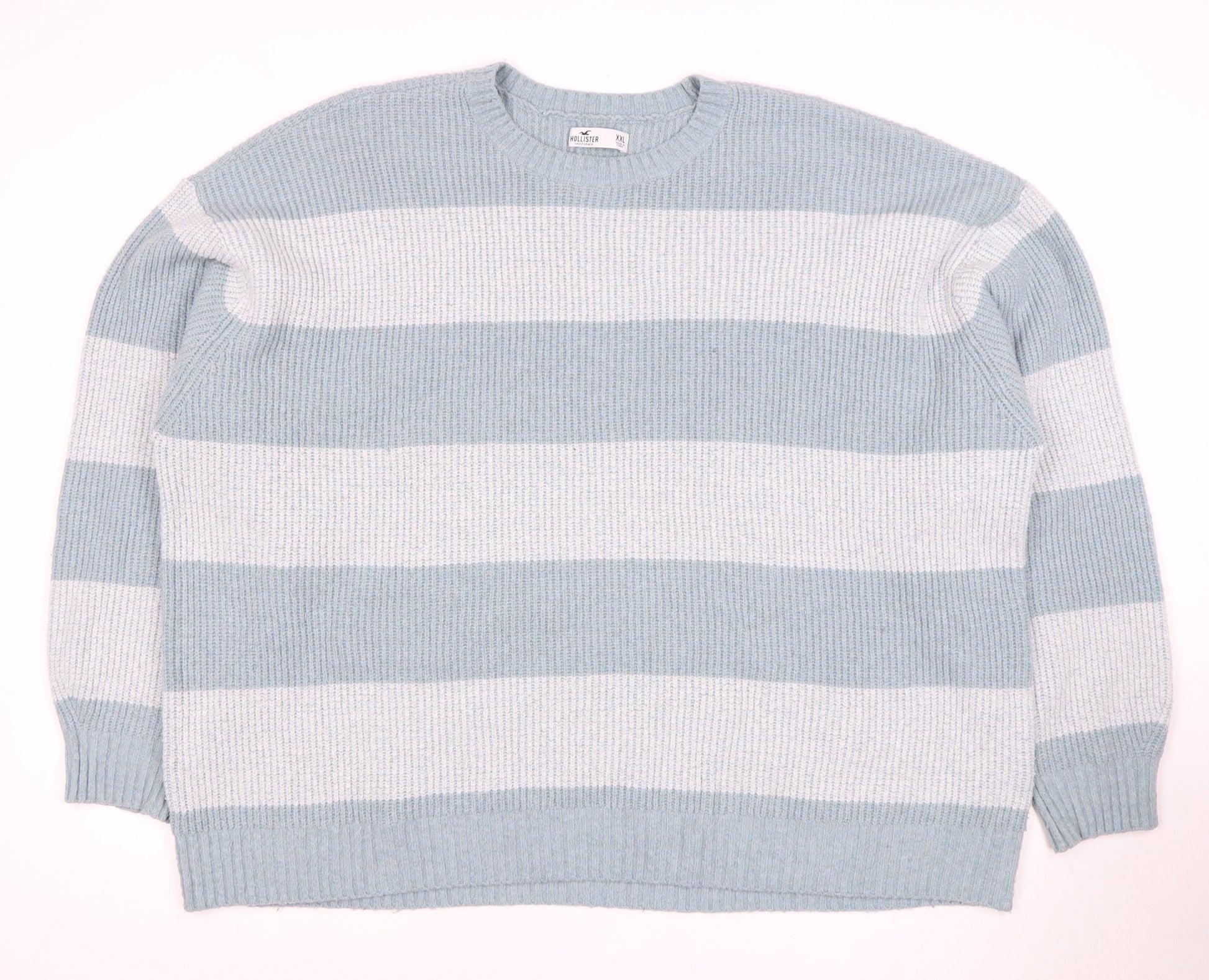 Hollister Women's Blue Striped Pullover Jumper 2XL