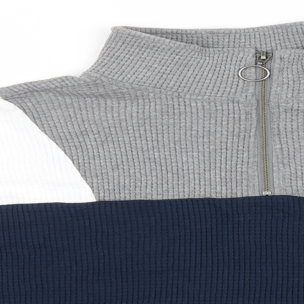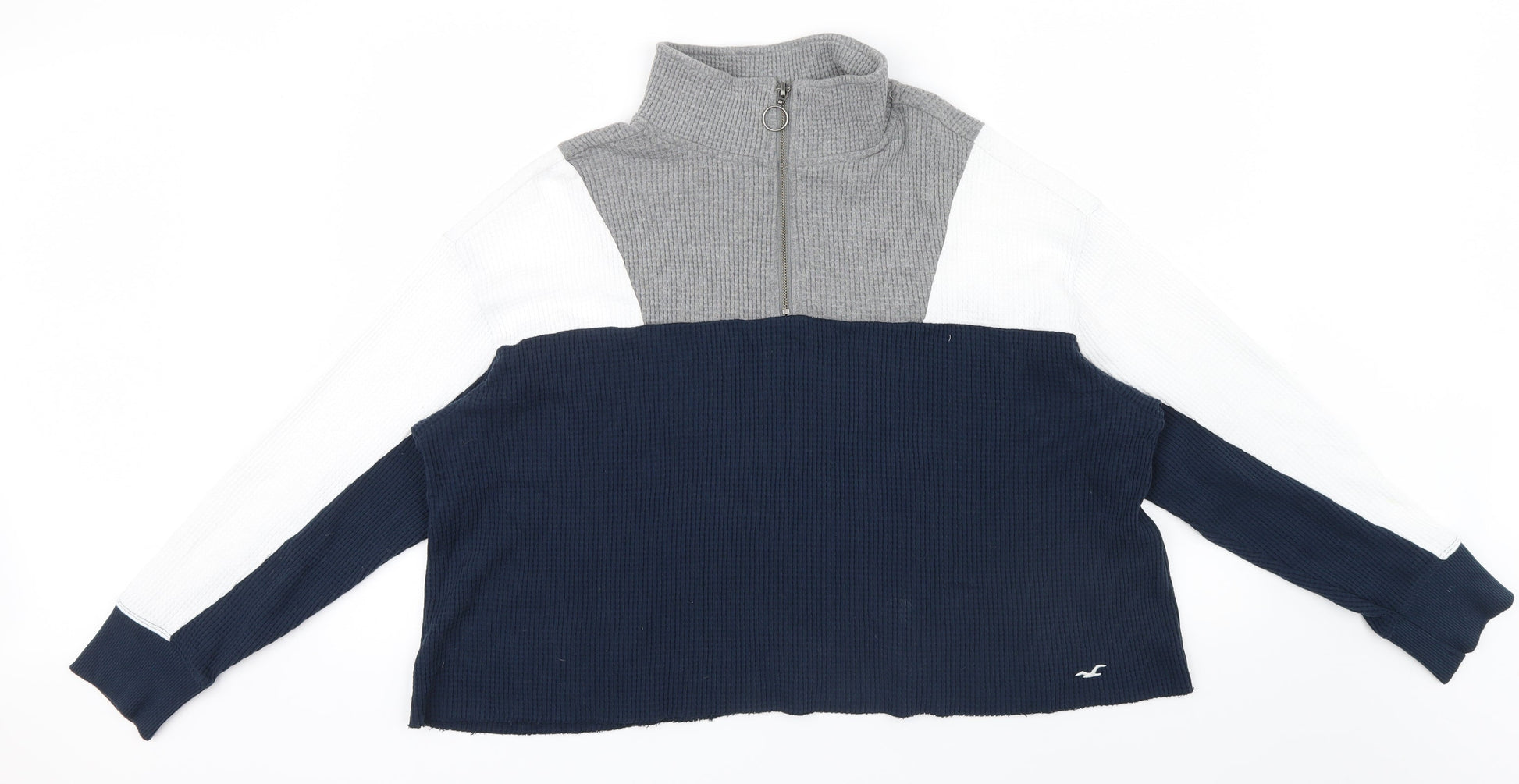 Hollister Womens Blue Striped Pullover Jumper Size M - zip Neck ,white grey Blue