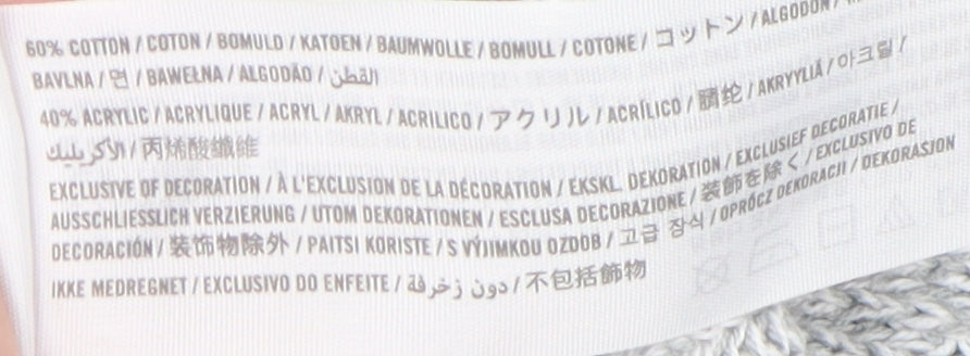 - Material Breakdown: 60% Cotton 40% Acrylic