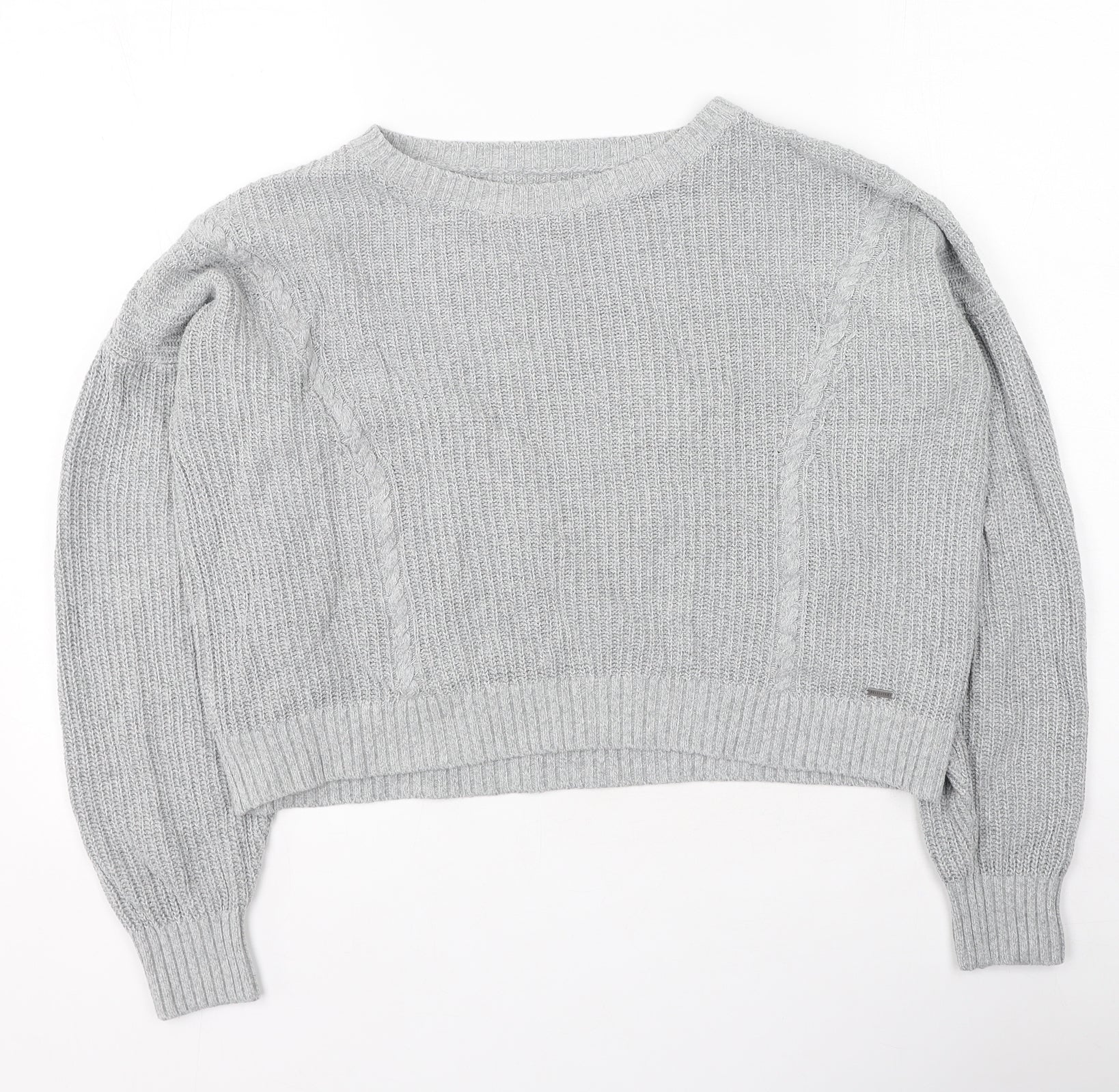 Hollister Womens Grey Round Neck Cotton Pullover Jumper Size S