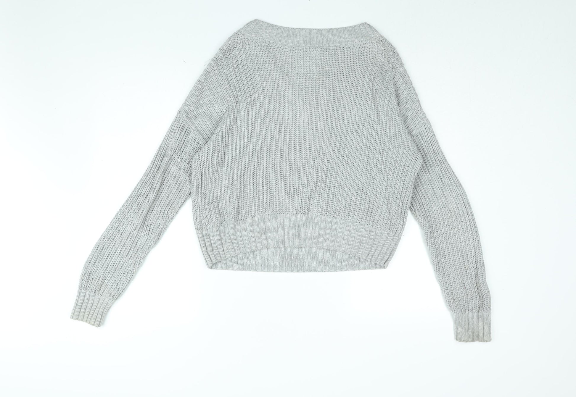 Hollister Womens Grey V-Neck Cotton Pullover Jumper Size S
