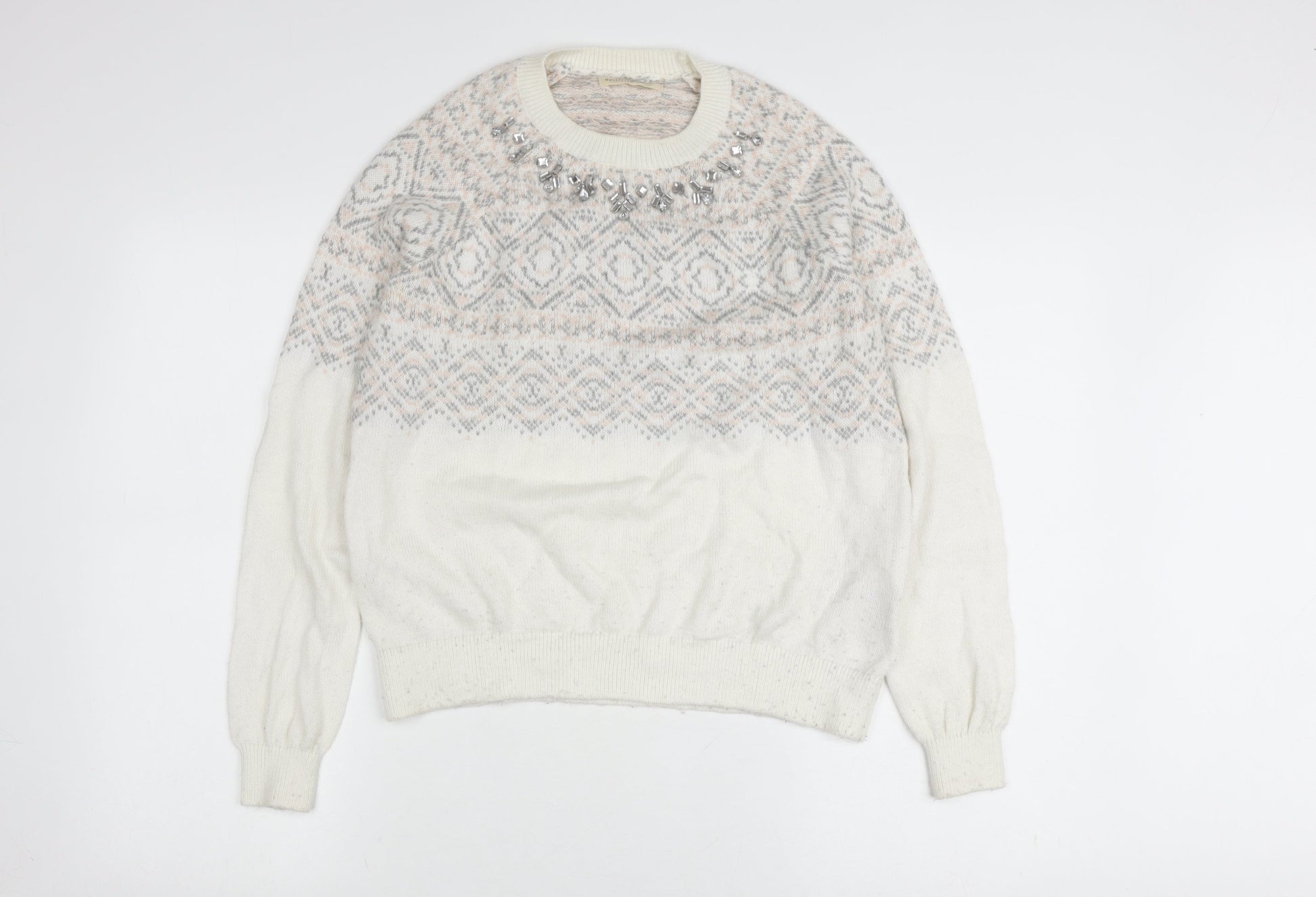 Hollister Women's Ivory Fair Isle Knit Jumper