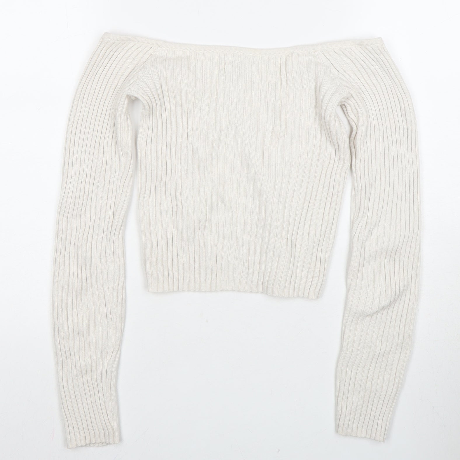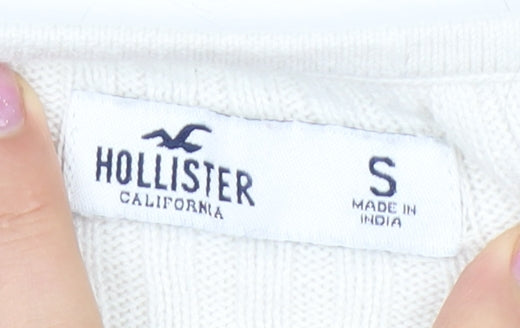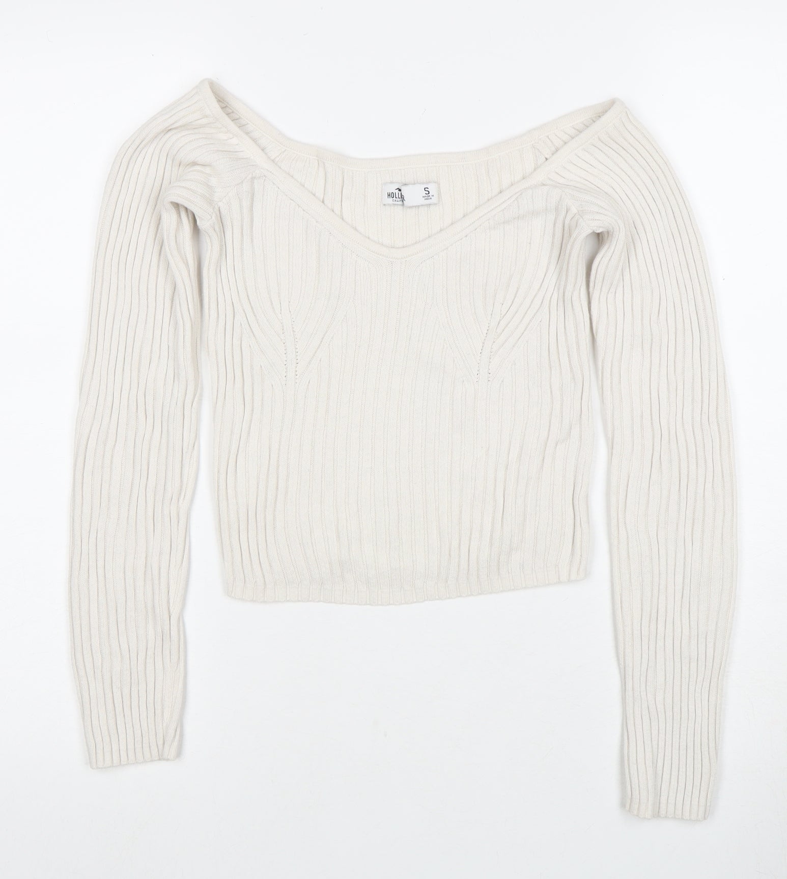 Hollister Women's Ivory V-Neck Pullover Jumper - Small