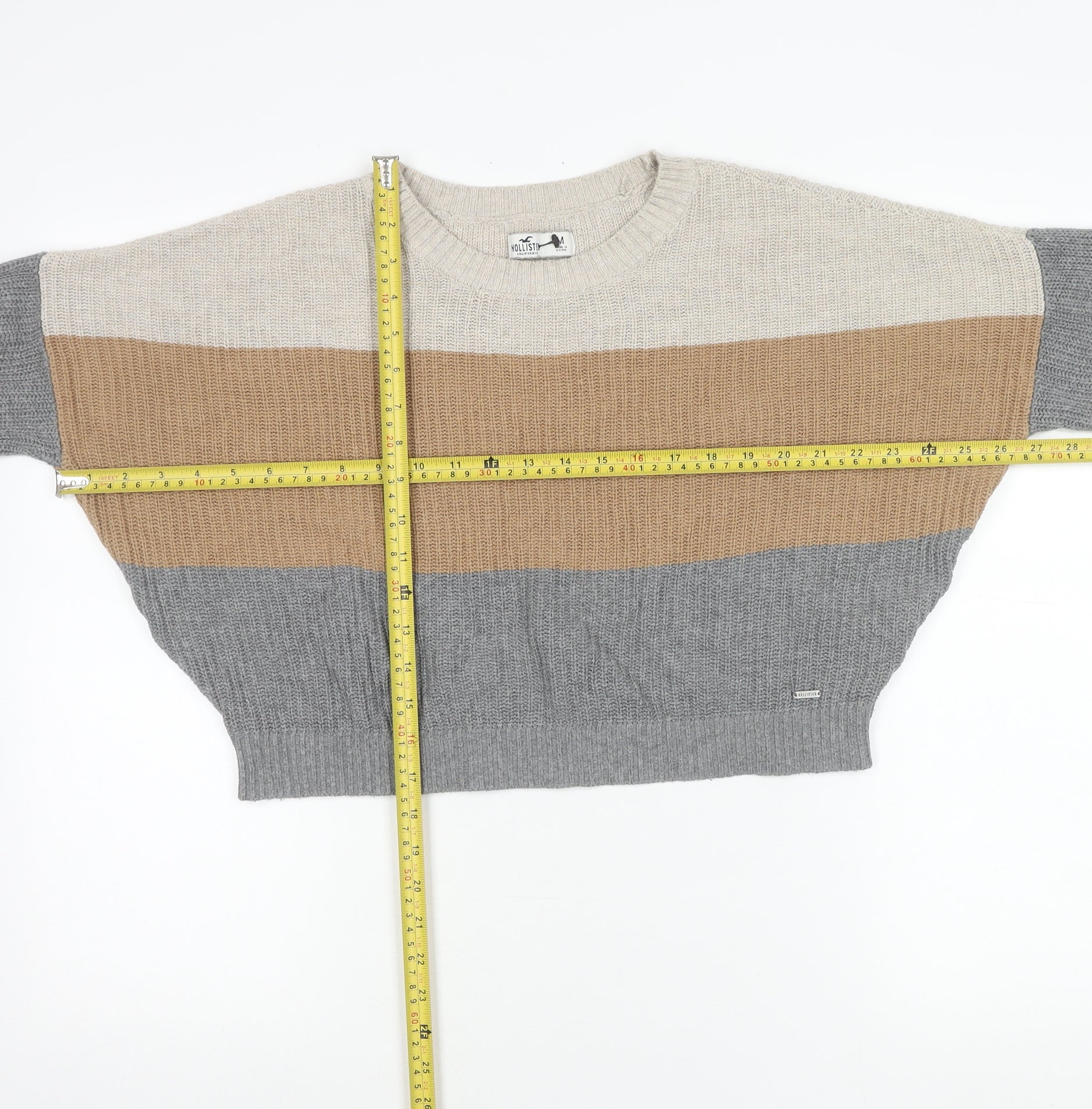 Hollister Womens M Beige Brown Grey Striped Knit Pullover Jumper