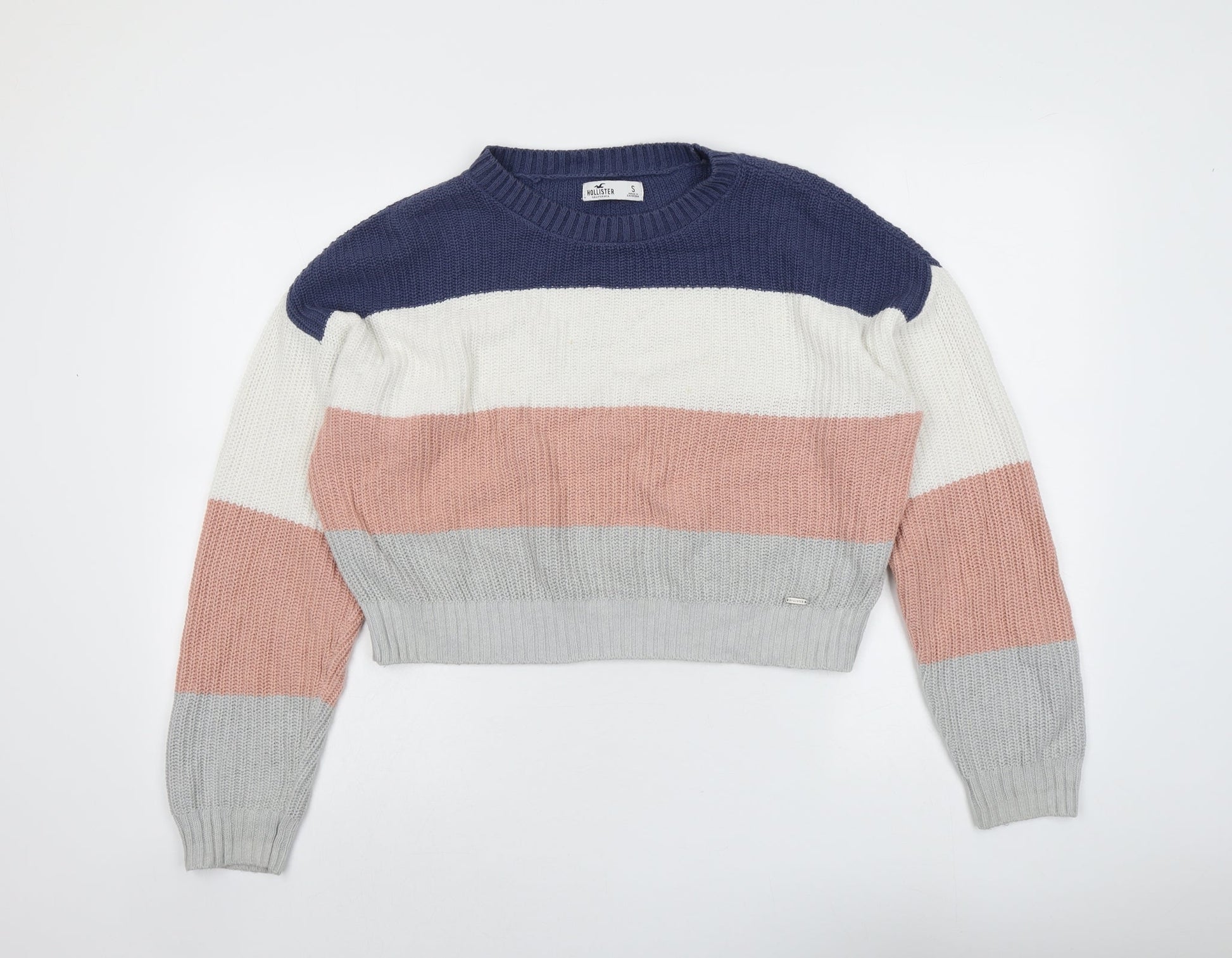Hollister Womens Multicoloured Round Neck Striped Cotton Pullover Jumper Size S