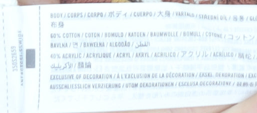 - Material Breakdown: 60% Cotton 40% Acrylic