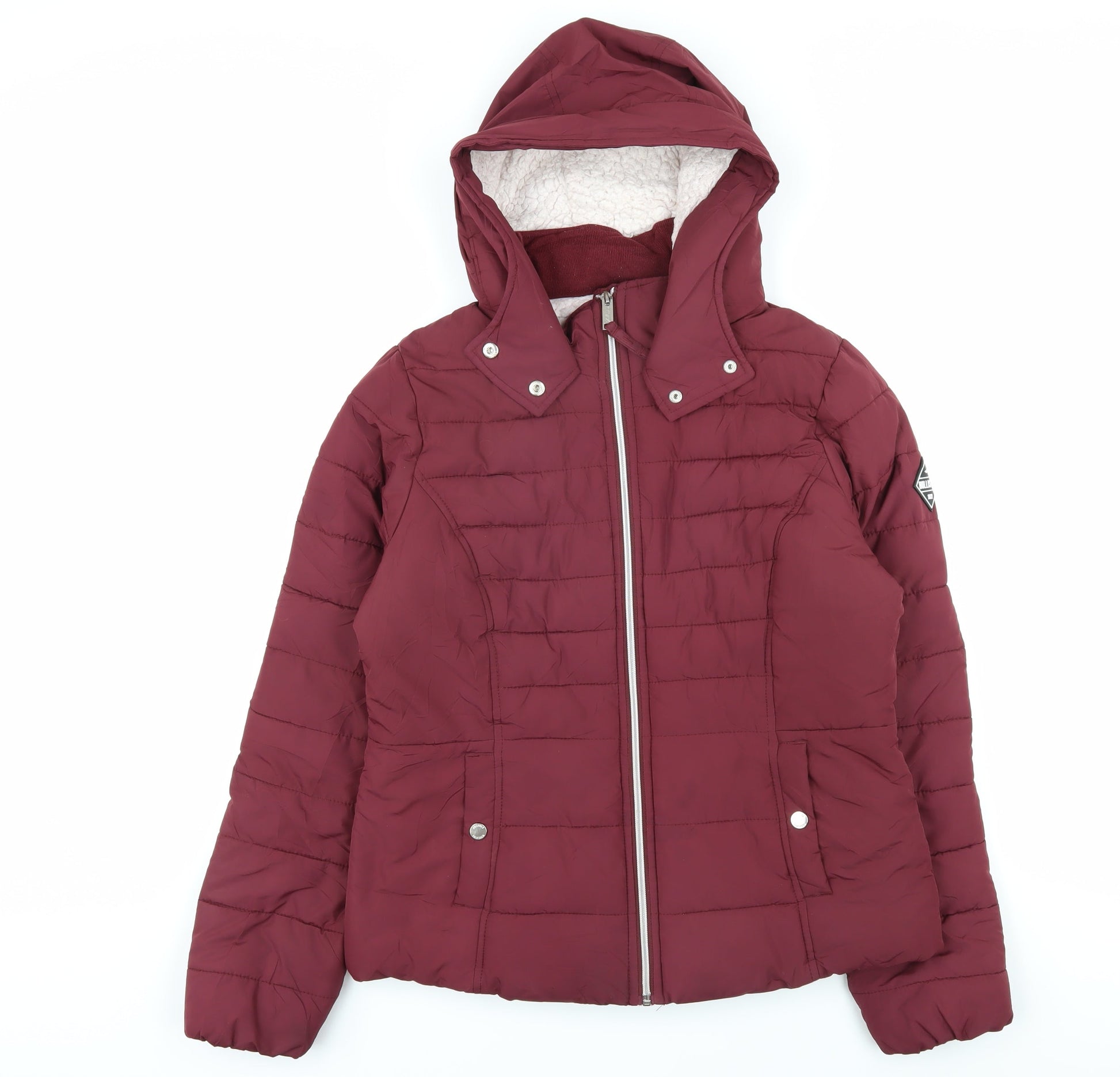 Hollister Women's Red Puffer Jacket L Hooded Lined