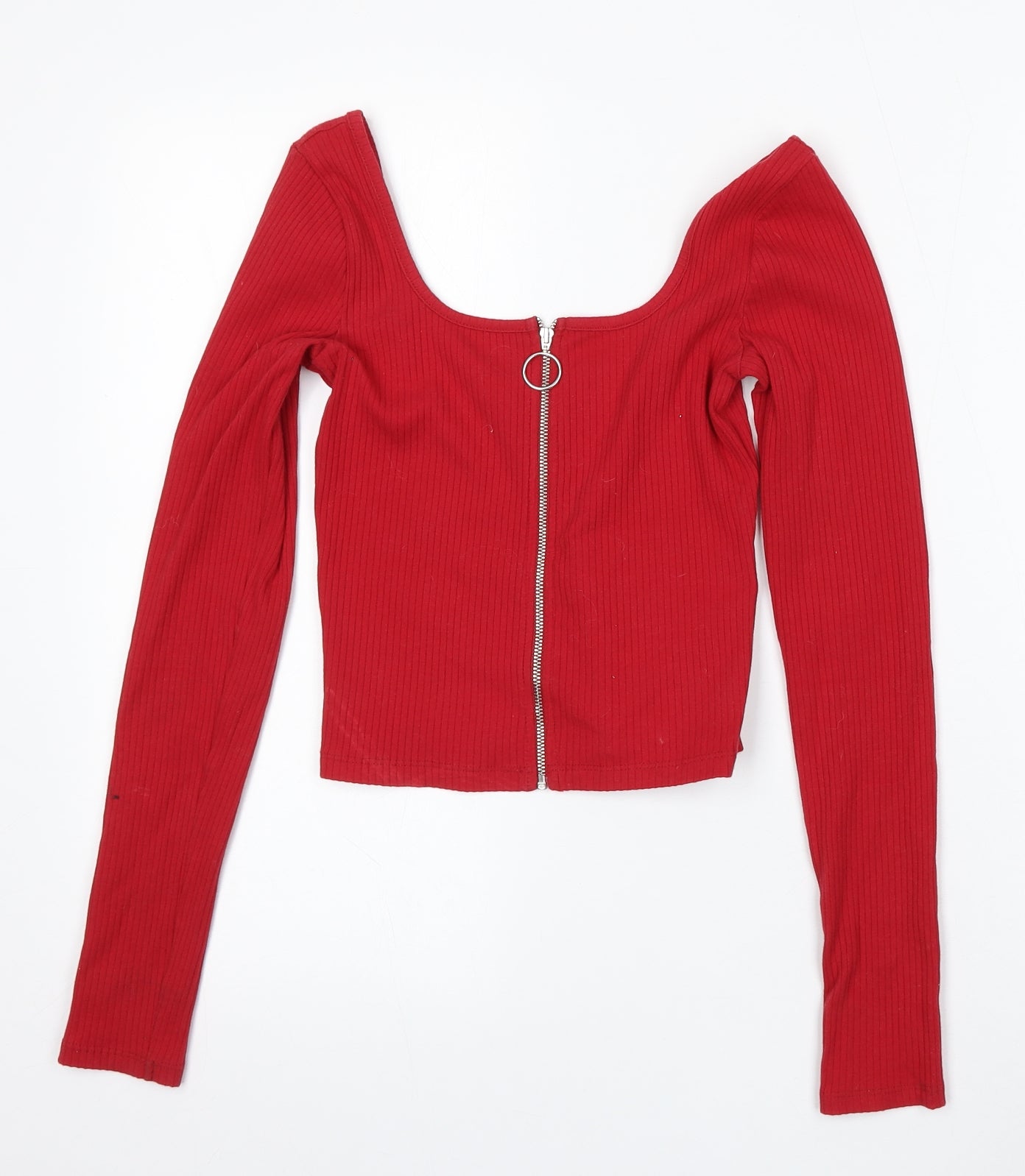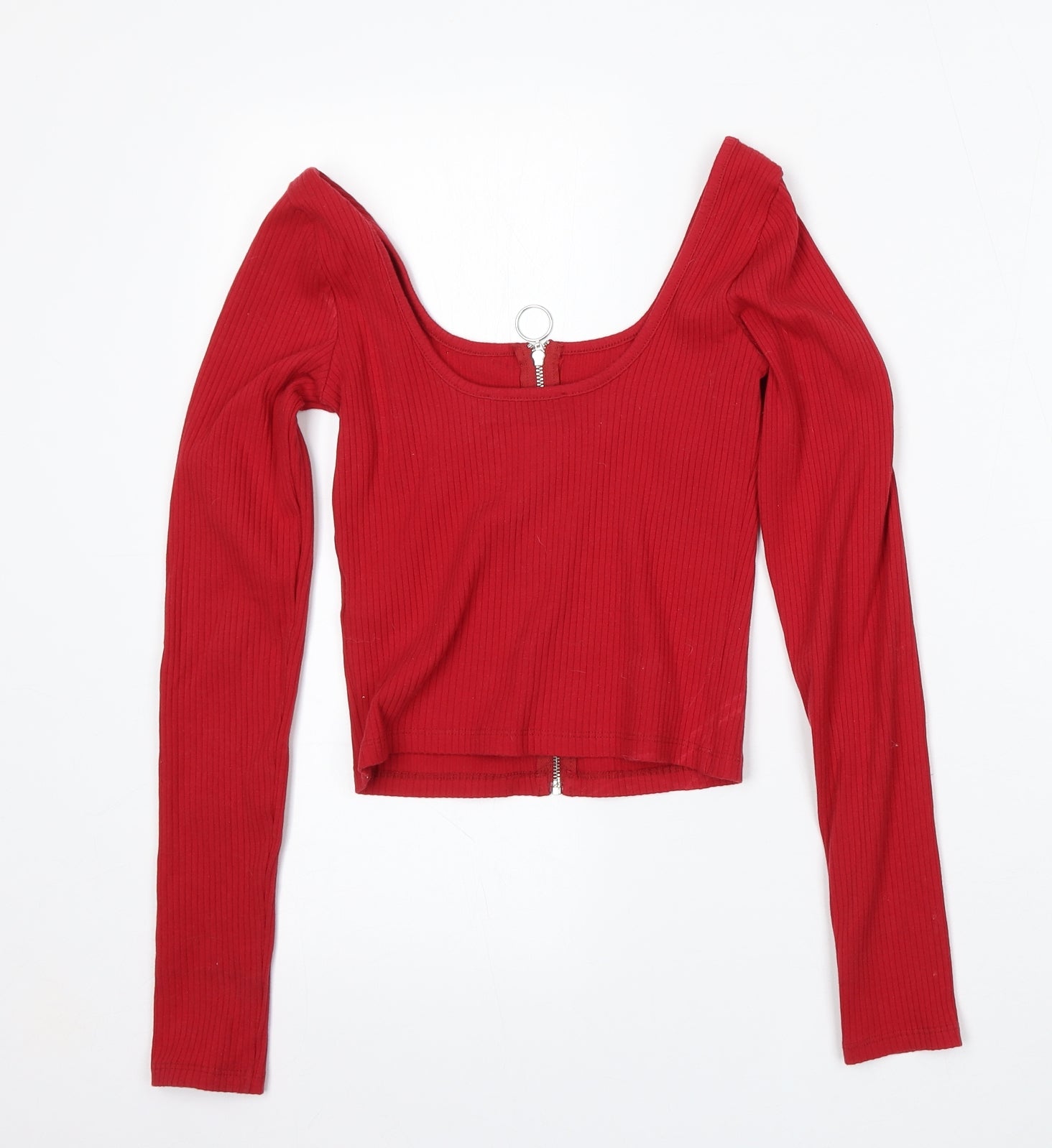 Hollister Womens Red Round Neck Cotton Pullover Jumper Size XS