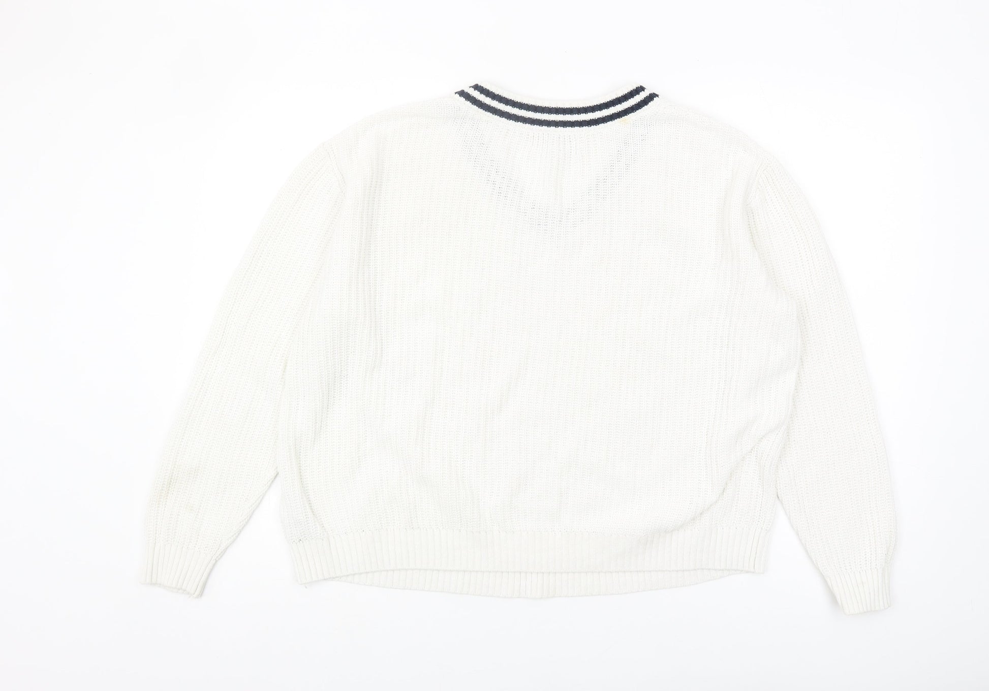 Hollister Women's White Cable-Knit V-Neck Jumper, M