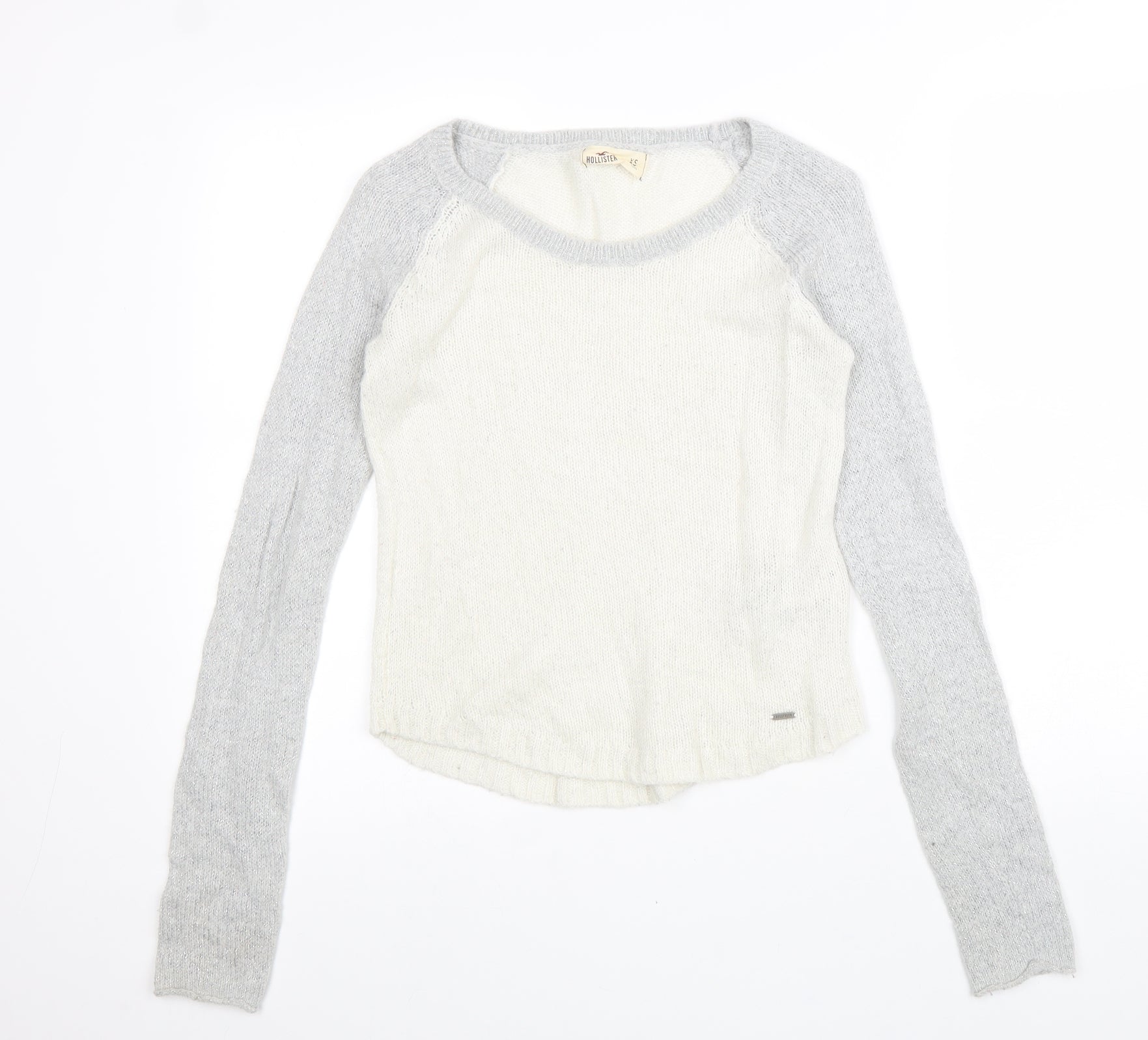 Hollister Womens White Scoop Neck Acrylic Pullover Jumper Size XS