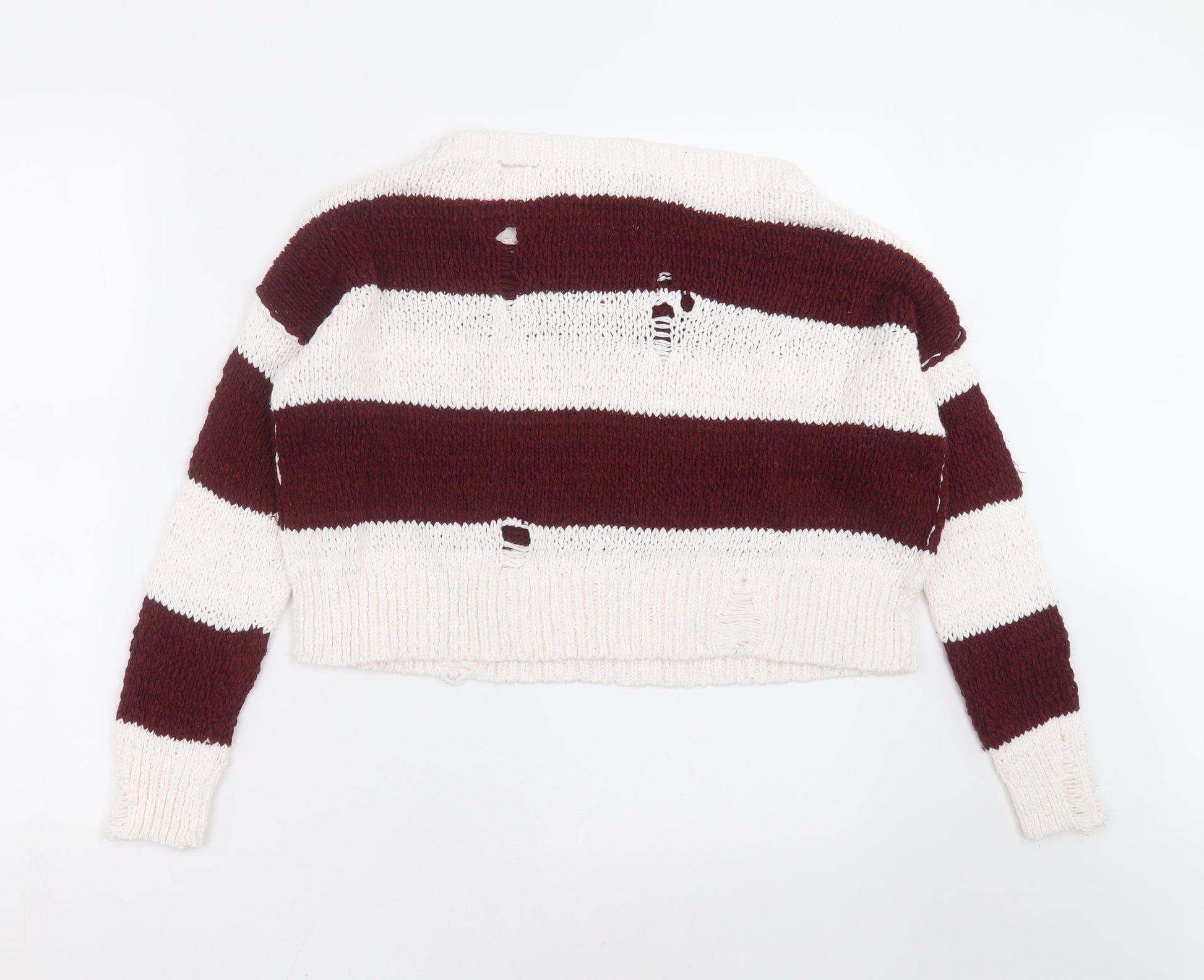 Hollister Womens White Striped Knit Pullover Jumper Size S - distressed, cropped
