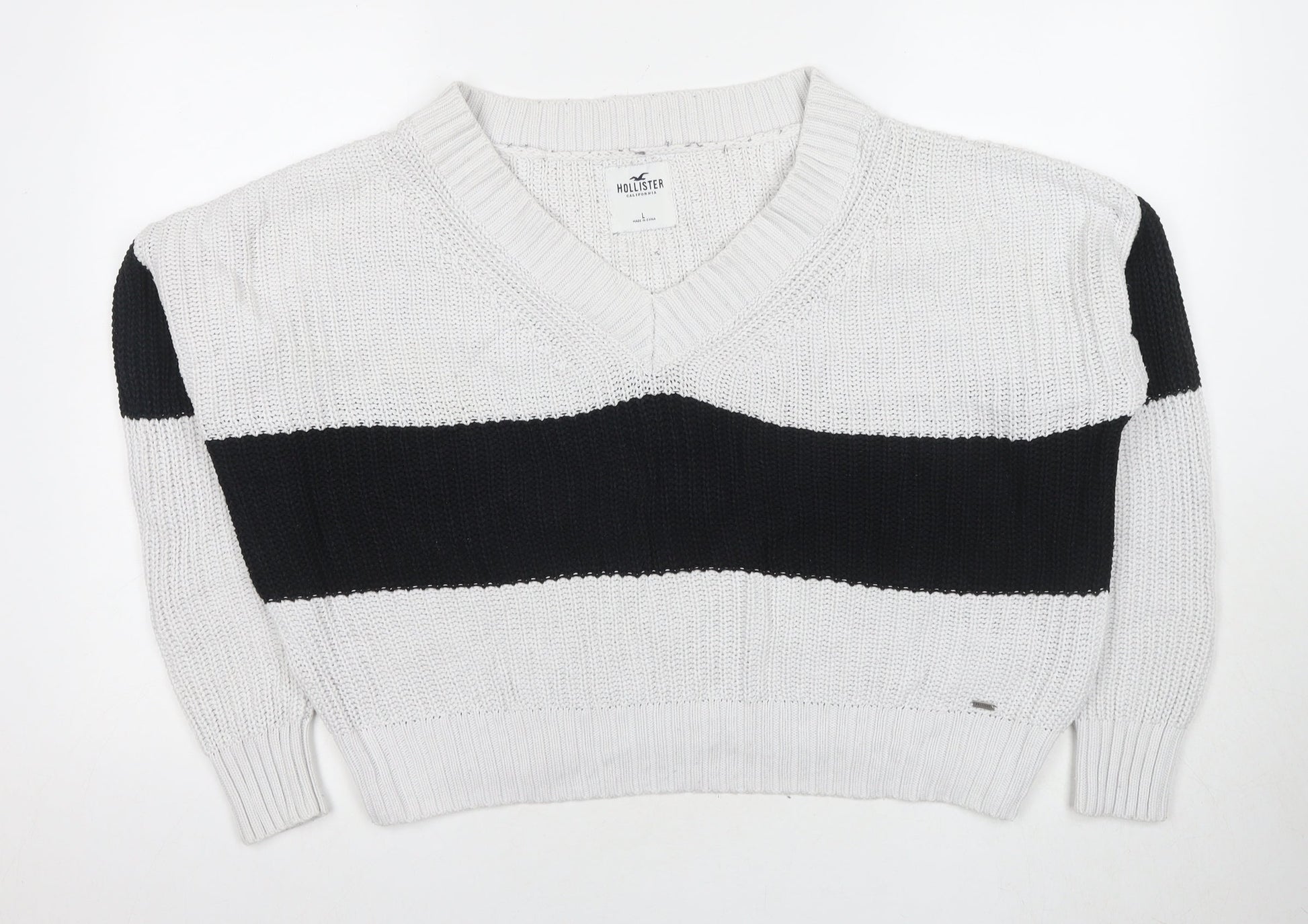 Hollister Women's White Striped Pullover Jumper L