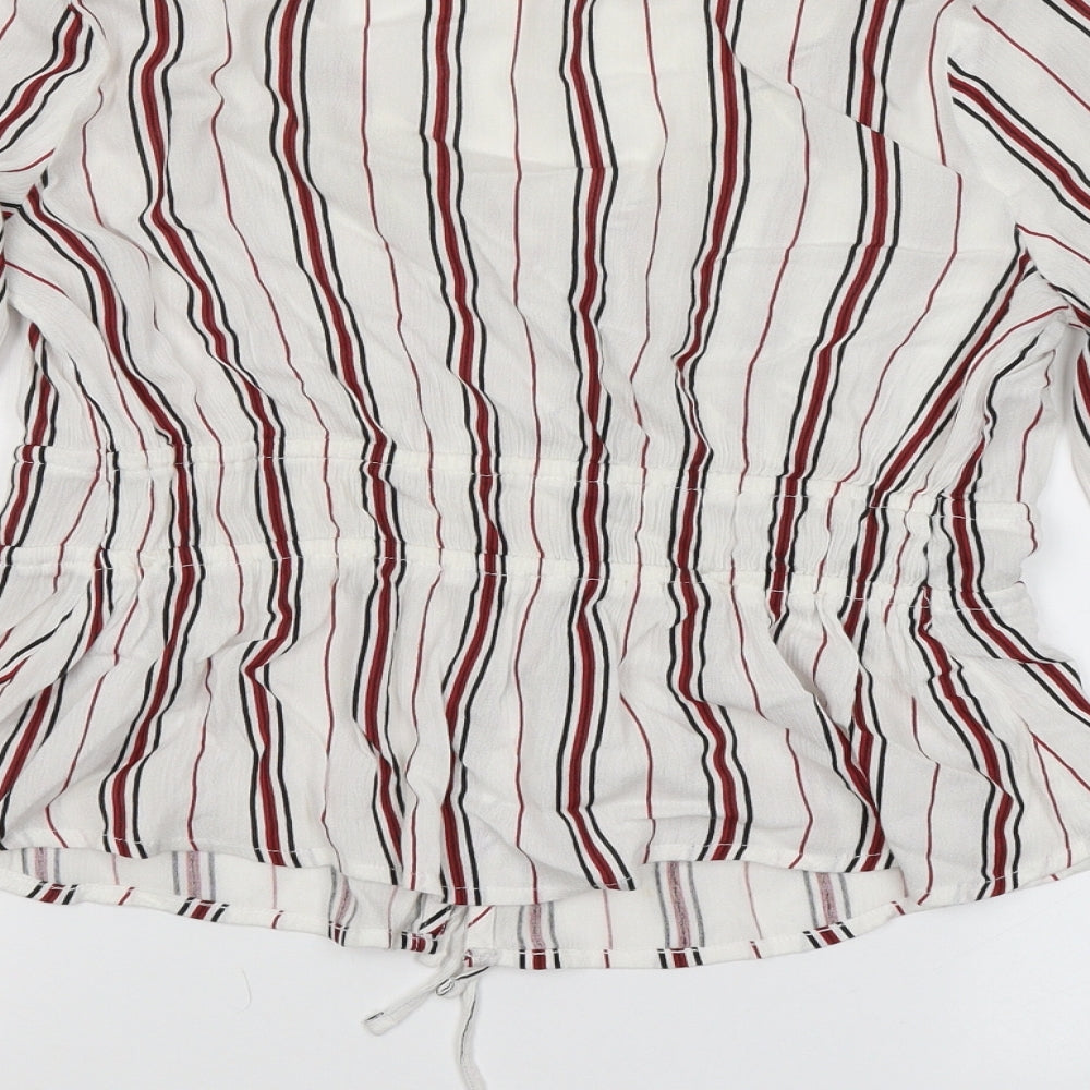 Hollister Womens White V-Neck Striped Viscose Cardigan Jumper Size S