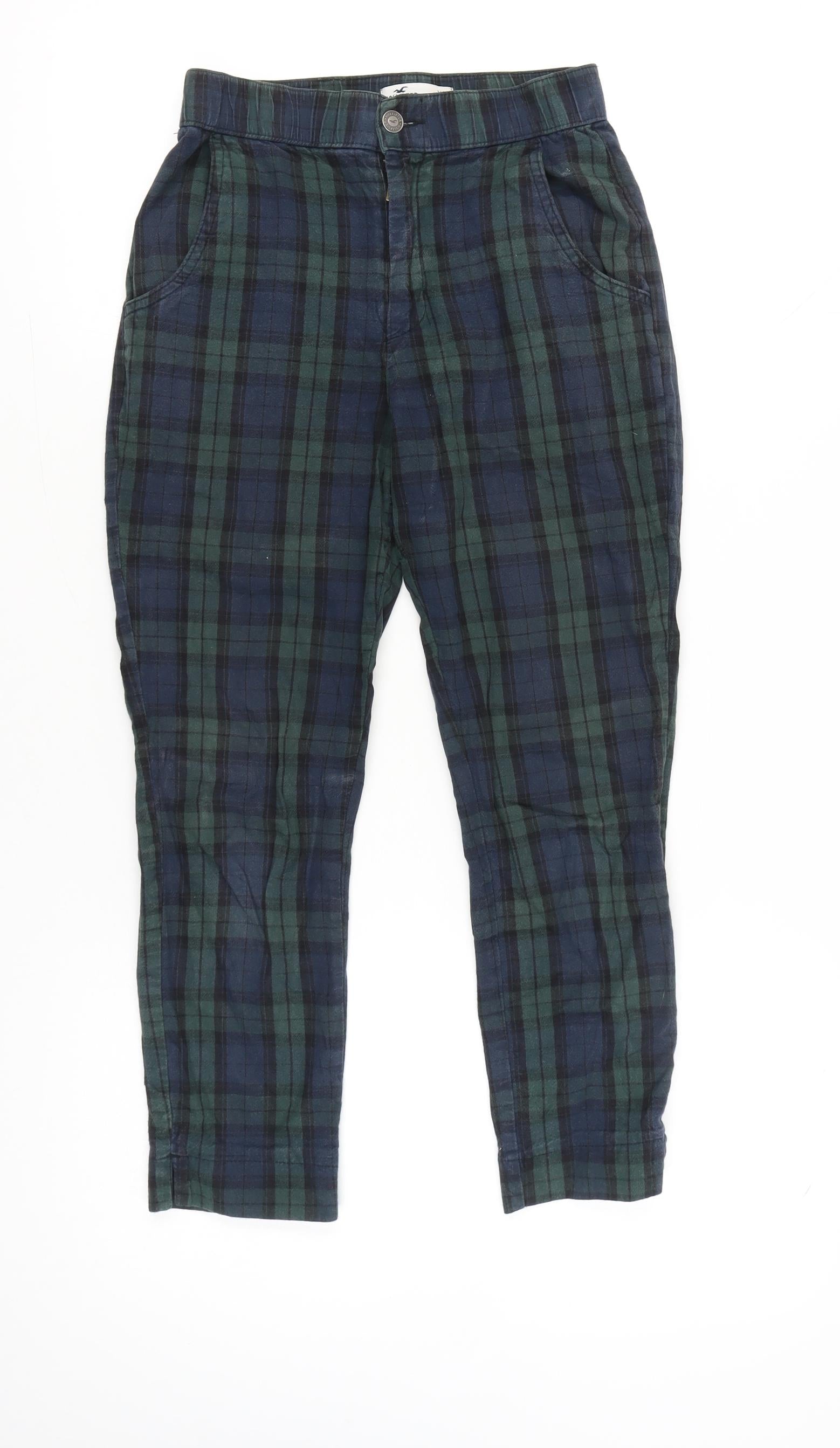 Hollister Womens XS Multicoloured Plaid Cotton Tapered Chino Trousers