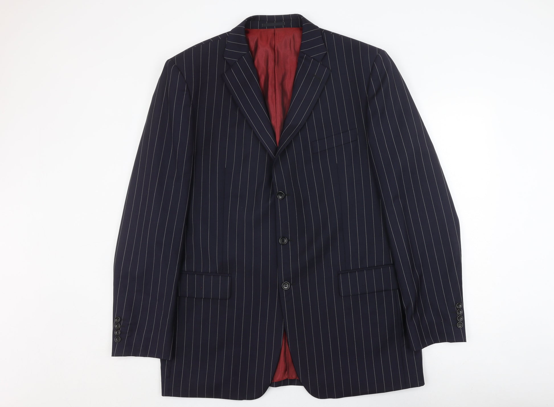 Howick Men's Blue Striped Classic Fit Wool Blazer 44L