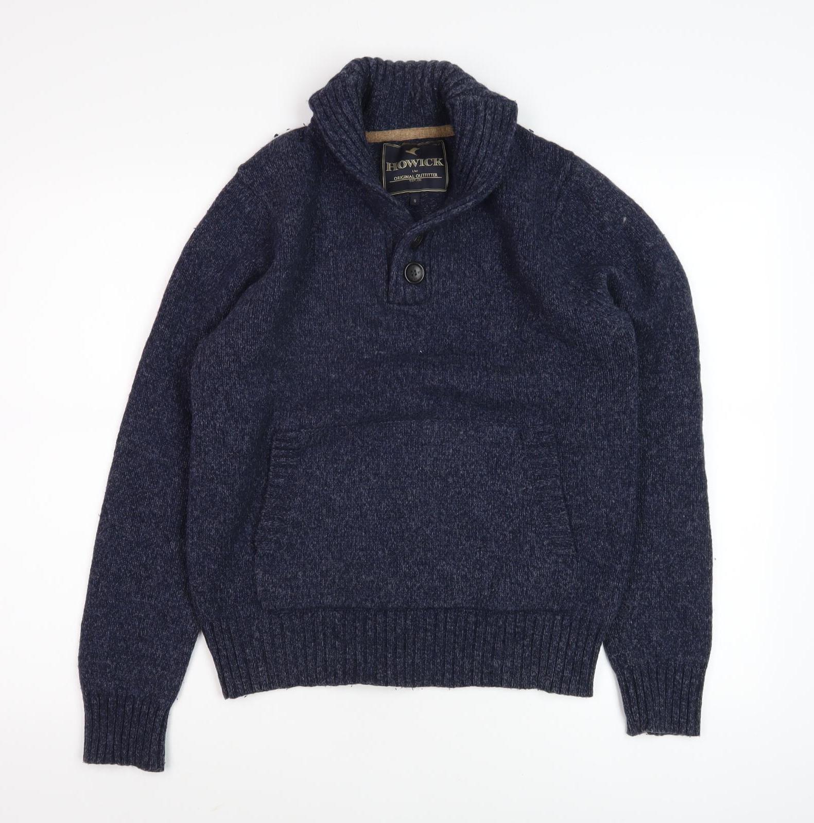 Howick Men's Blue Wool Henley Jumper, Size S