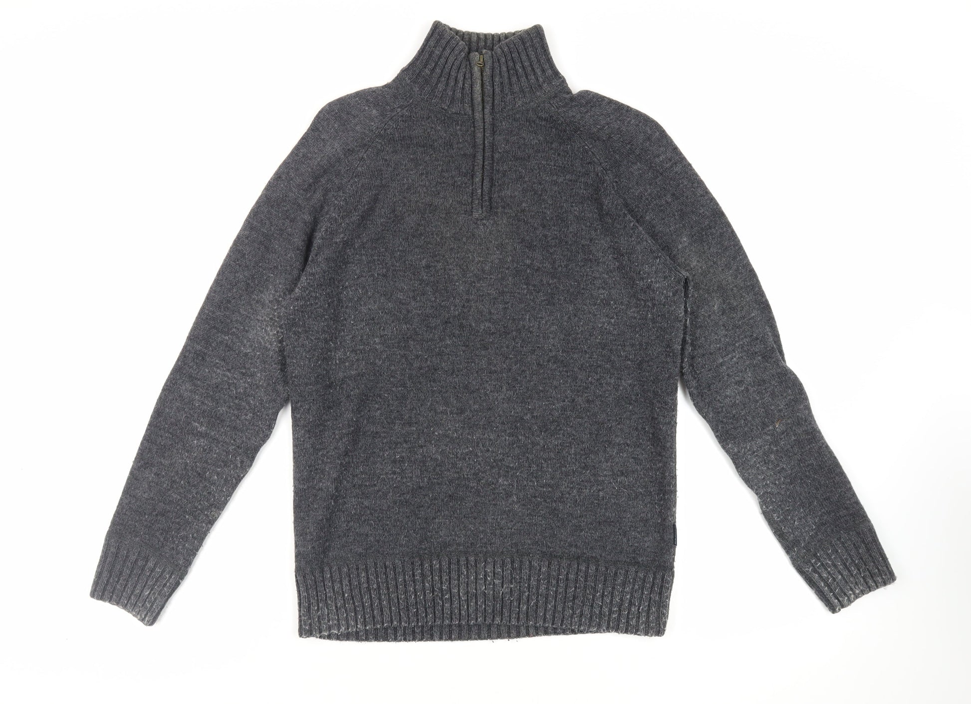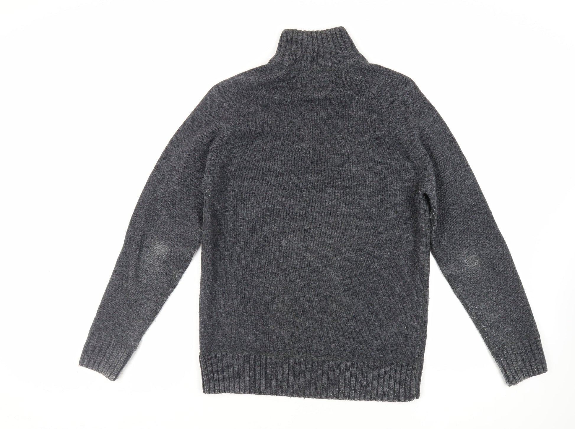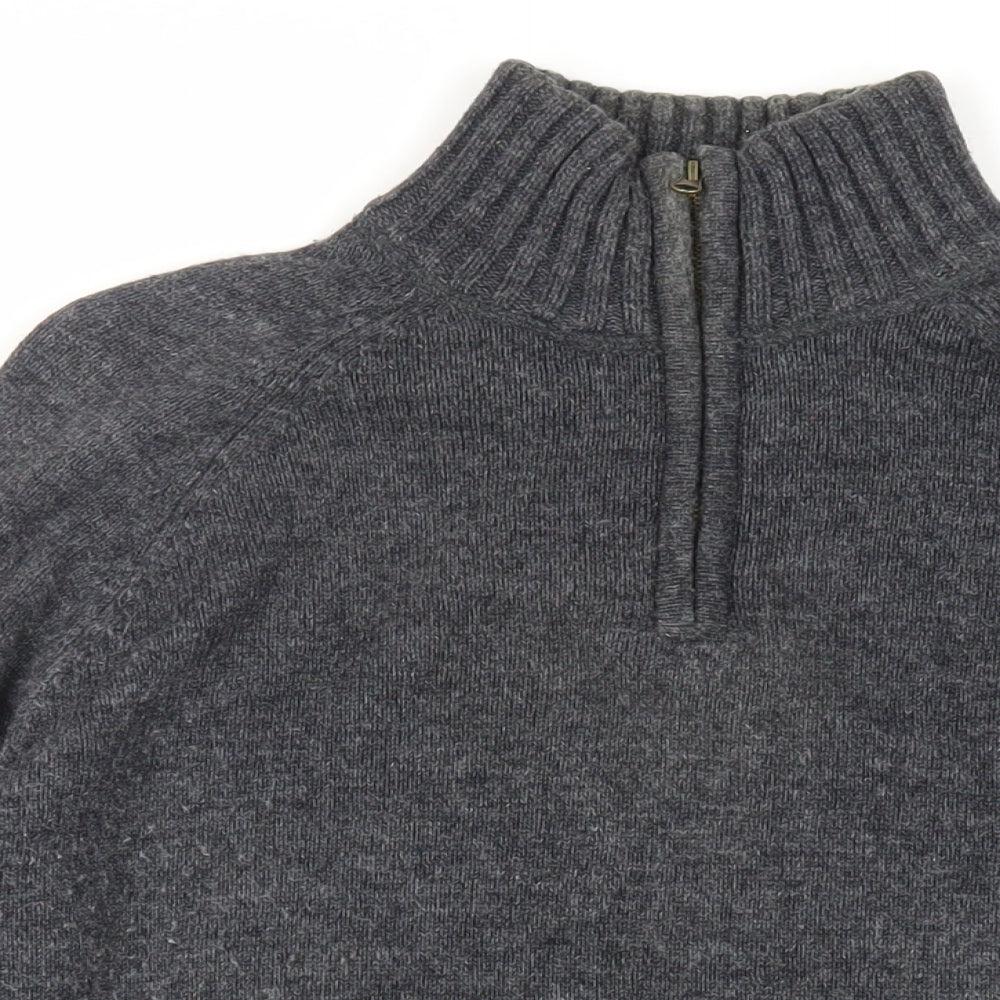 HOWICK Mens Grey High Neck Wool Pullover Jumper Size S Long Sleeve