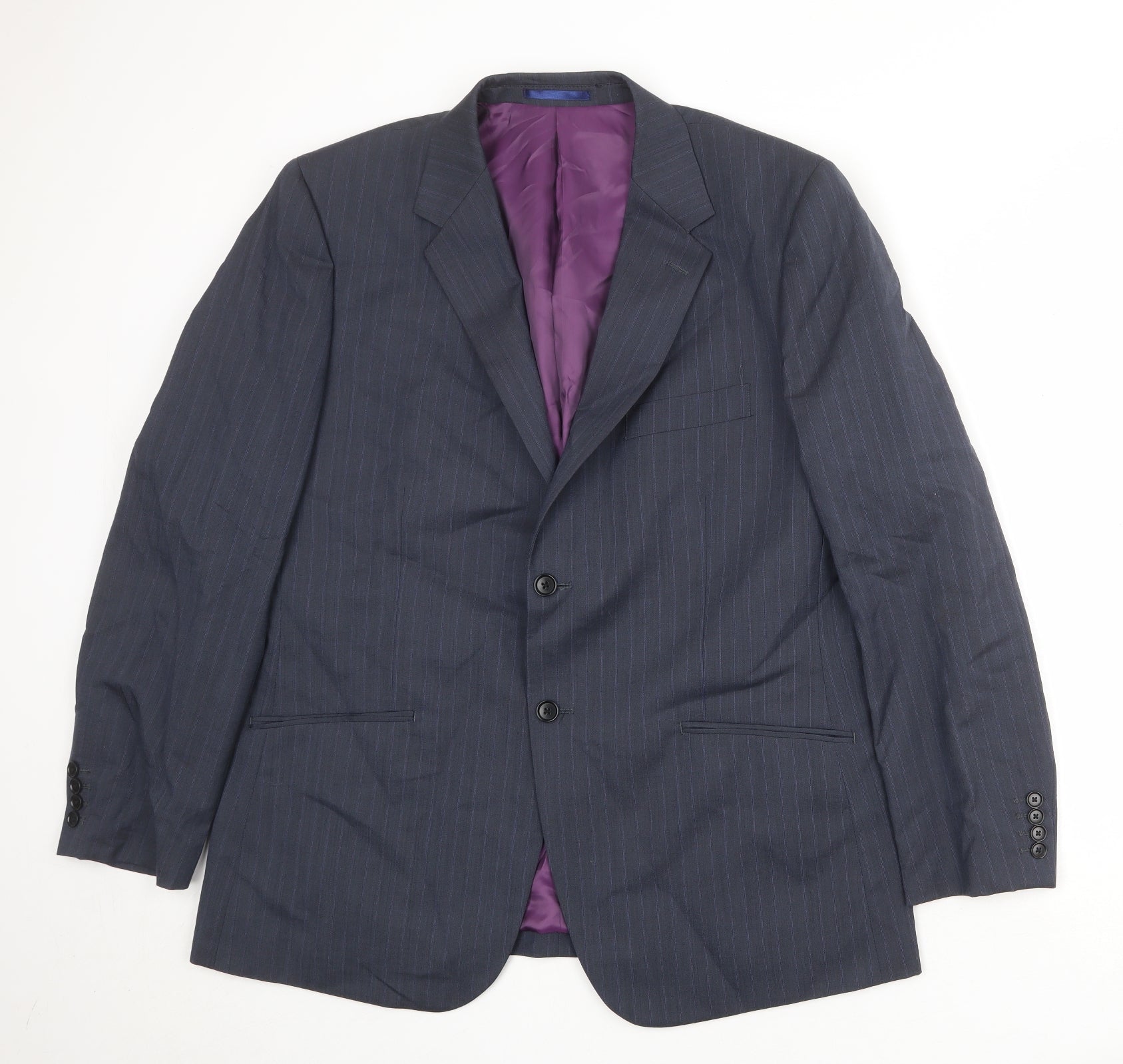 Howick Tailored Mens Blue Striped Wool Jacket Suit Jacket Size 44 Regular