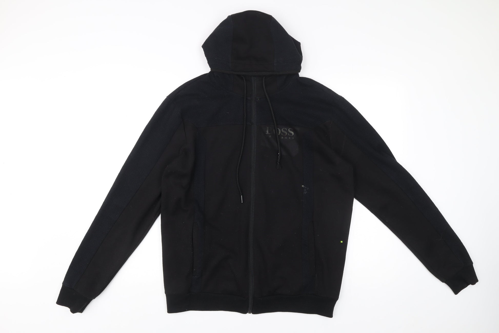 Hugo Boss Men’s Black Full Zip Hoodie Size L Cotton Logo Hooded Sweatshirt