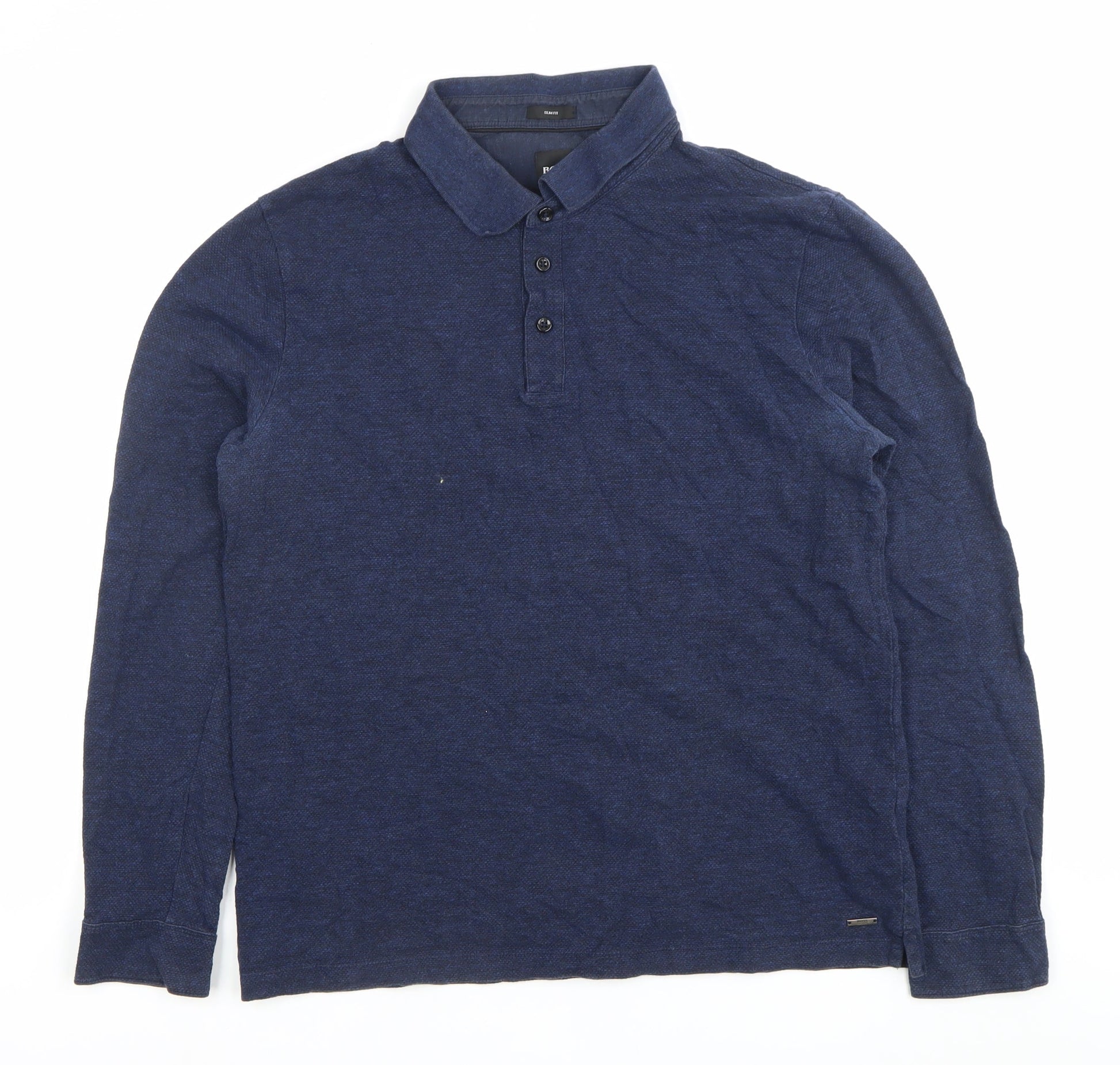 Hugo Boss Men’s Blue XL Long Sleeve Polo Shirt Cotton Stretch