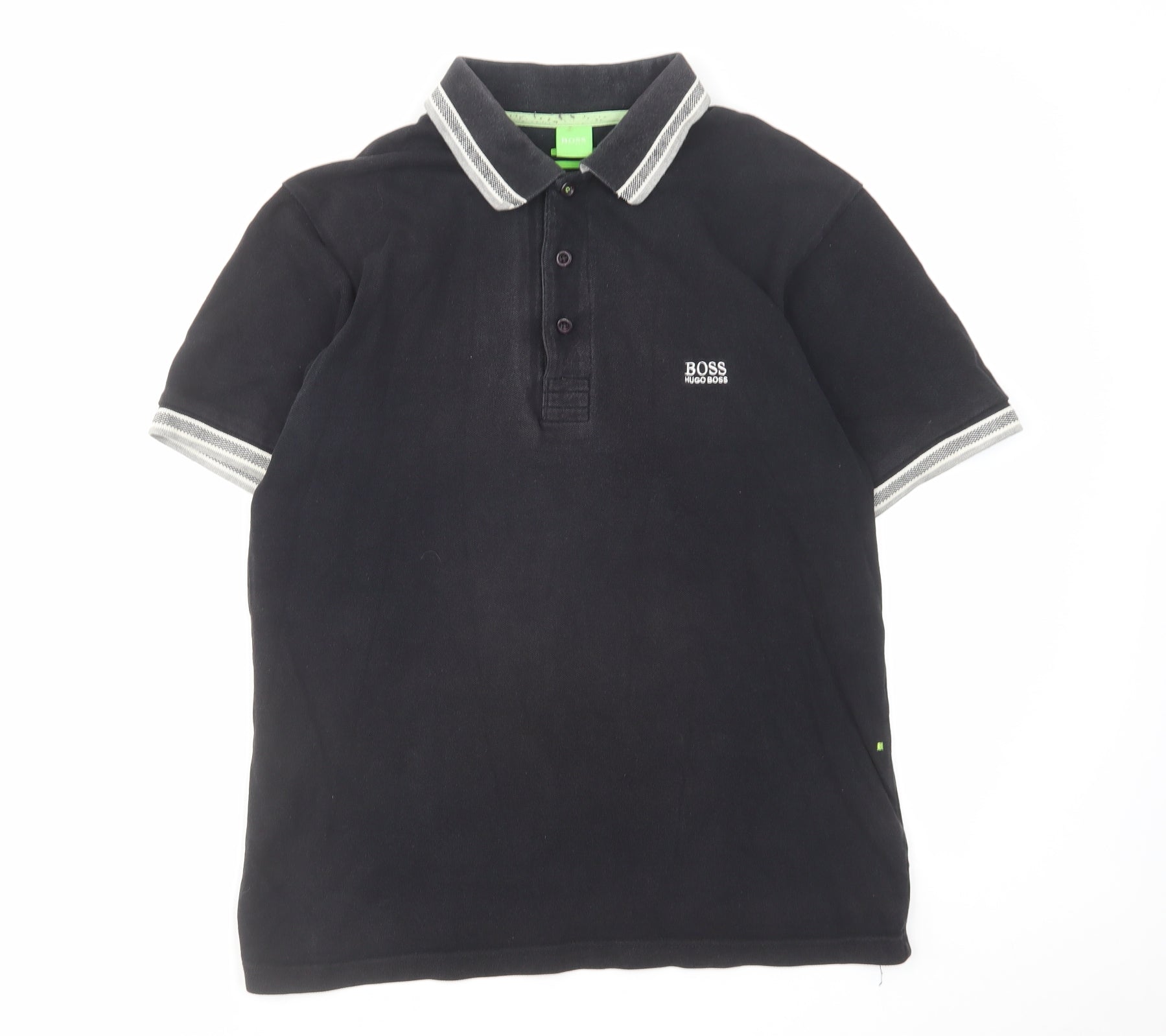 HUGO BOSS Mens Black Cotton Polo Size L Collared Button