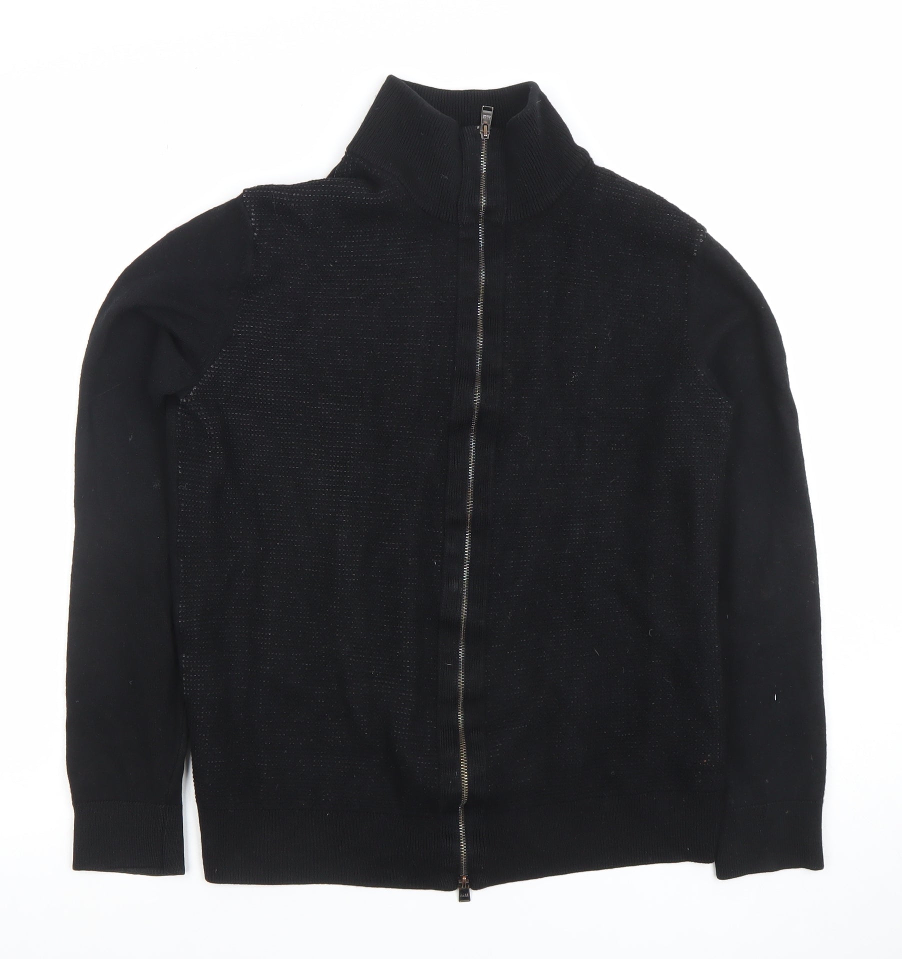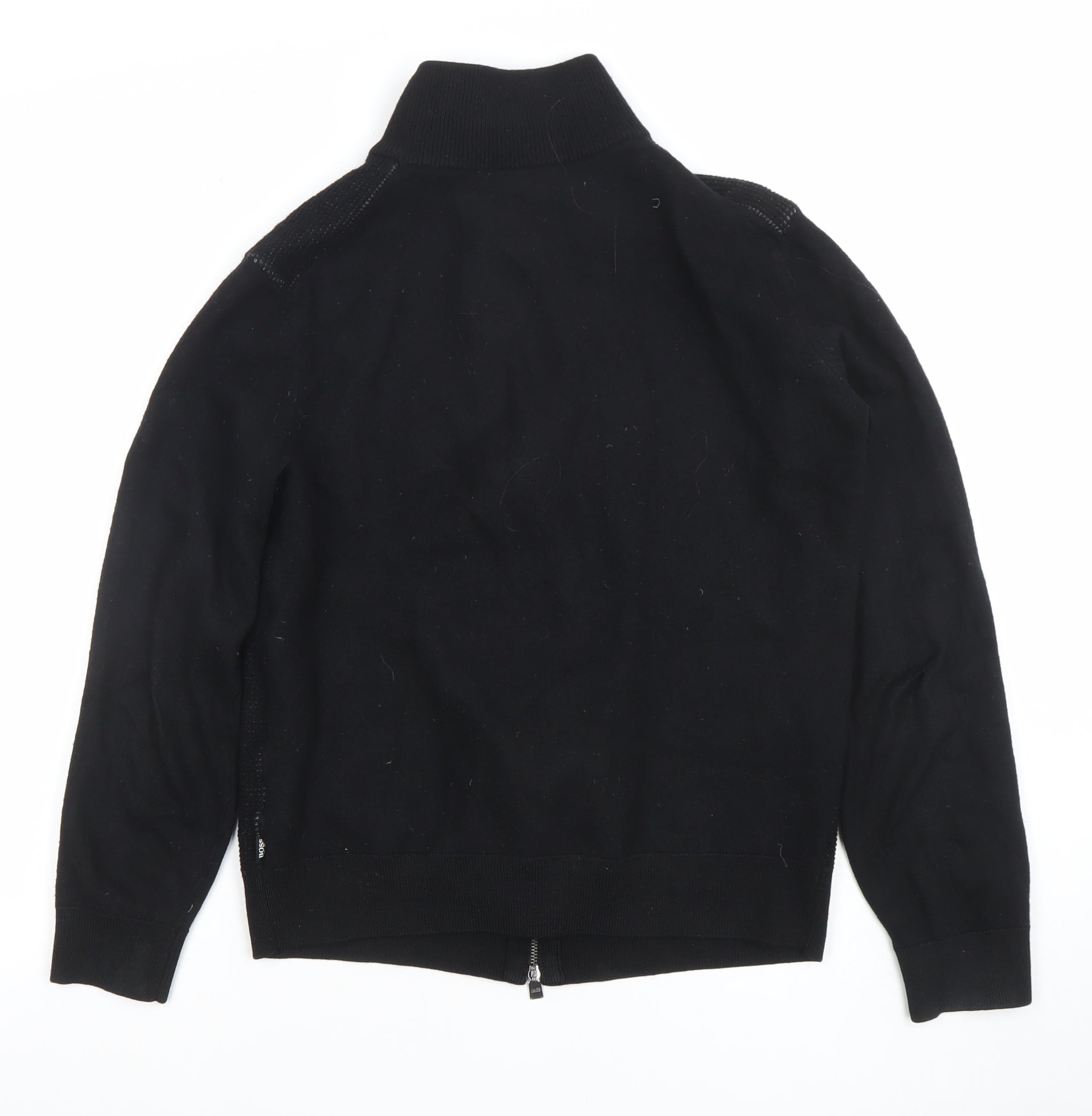 Hugo Boss Men's Black Full Zip High Neck Cotton Knit Jumper M