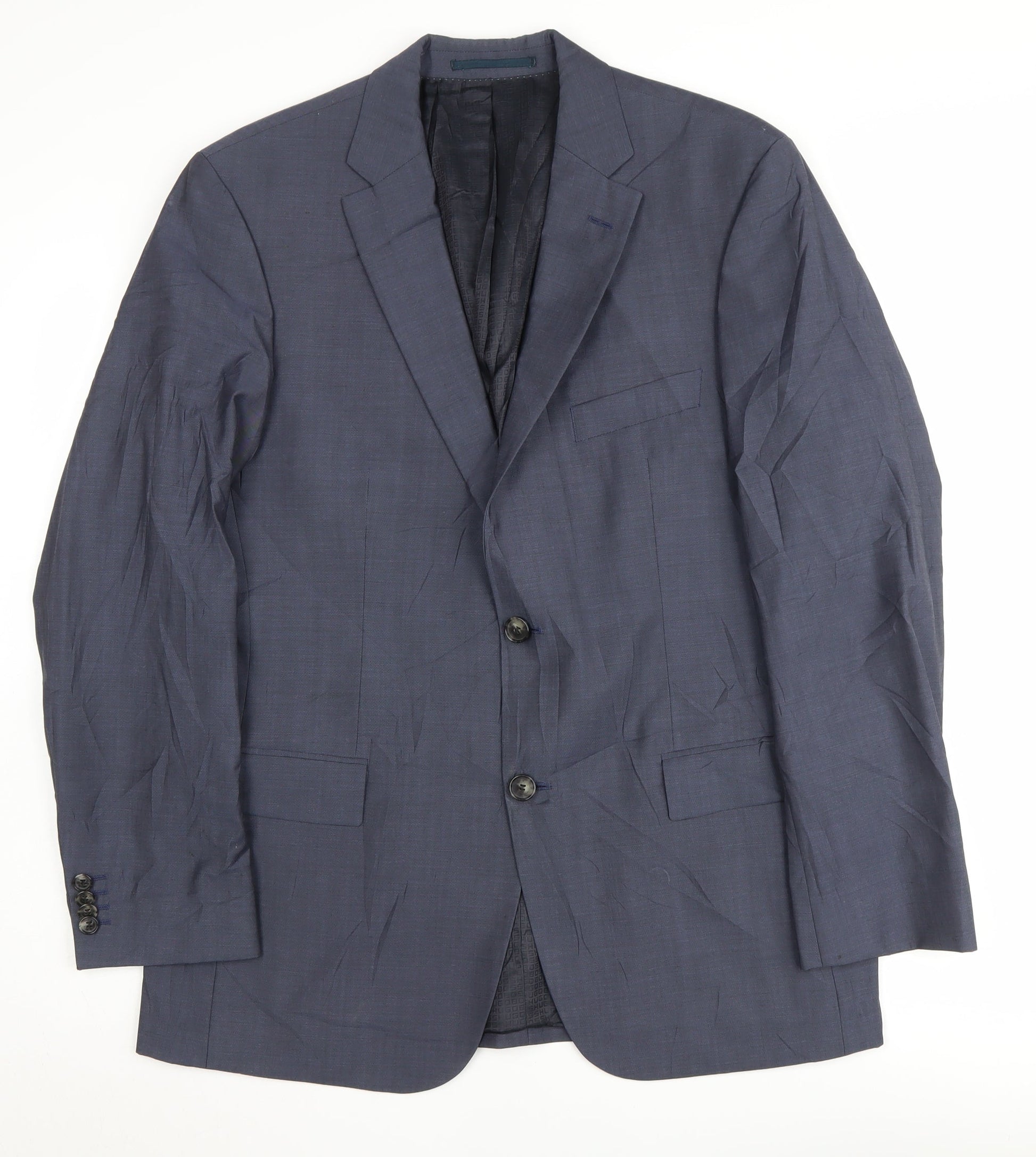 Hugo Boss Men's Blue Wool Blazer, Size 40, Elegant Formal Wear
