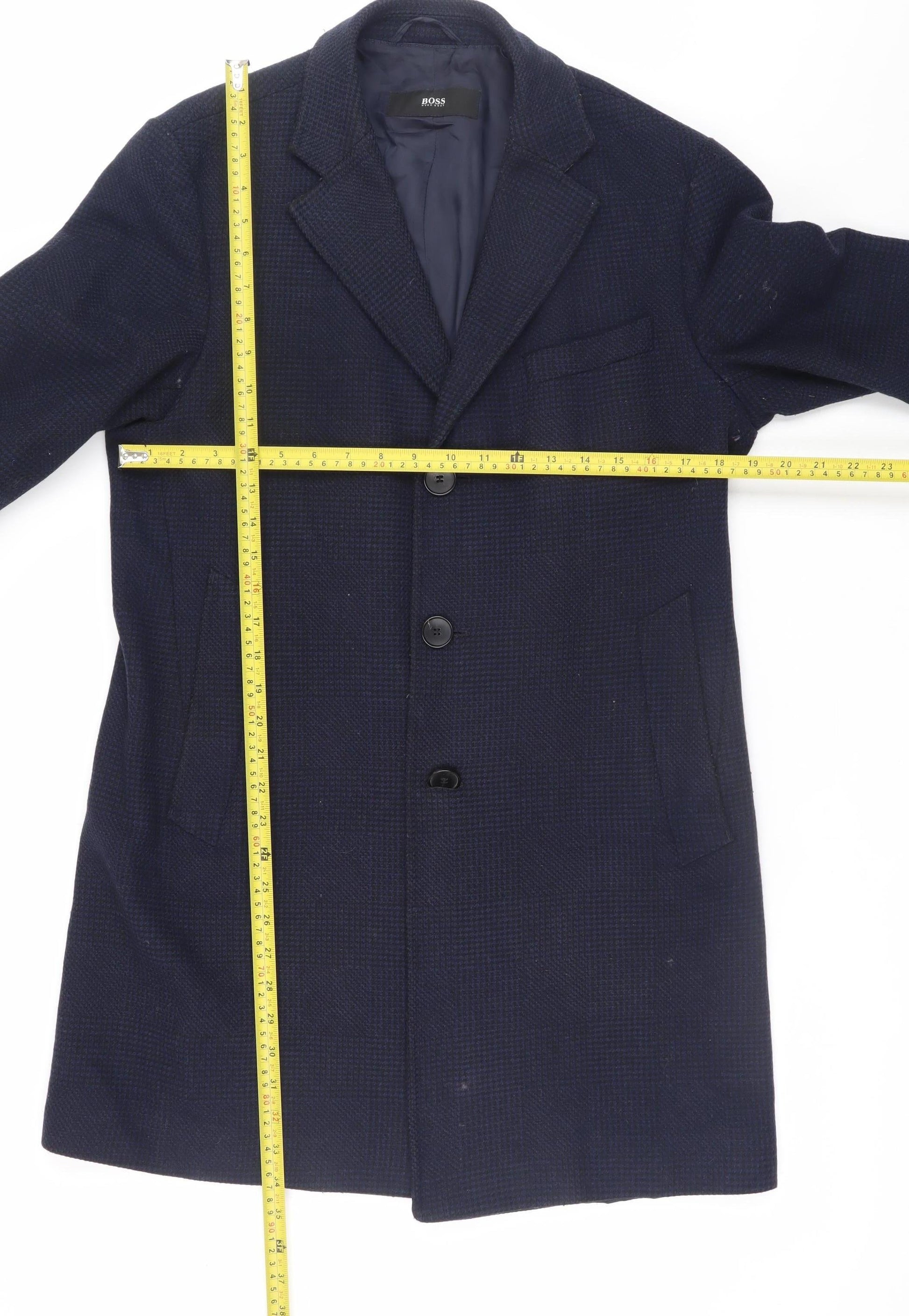 Hugo Boss Men's Blue Wool Blend Long Overcoat Size 46 Regular