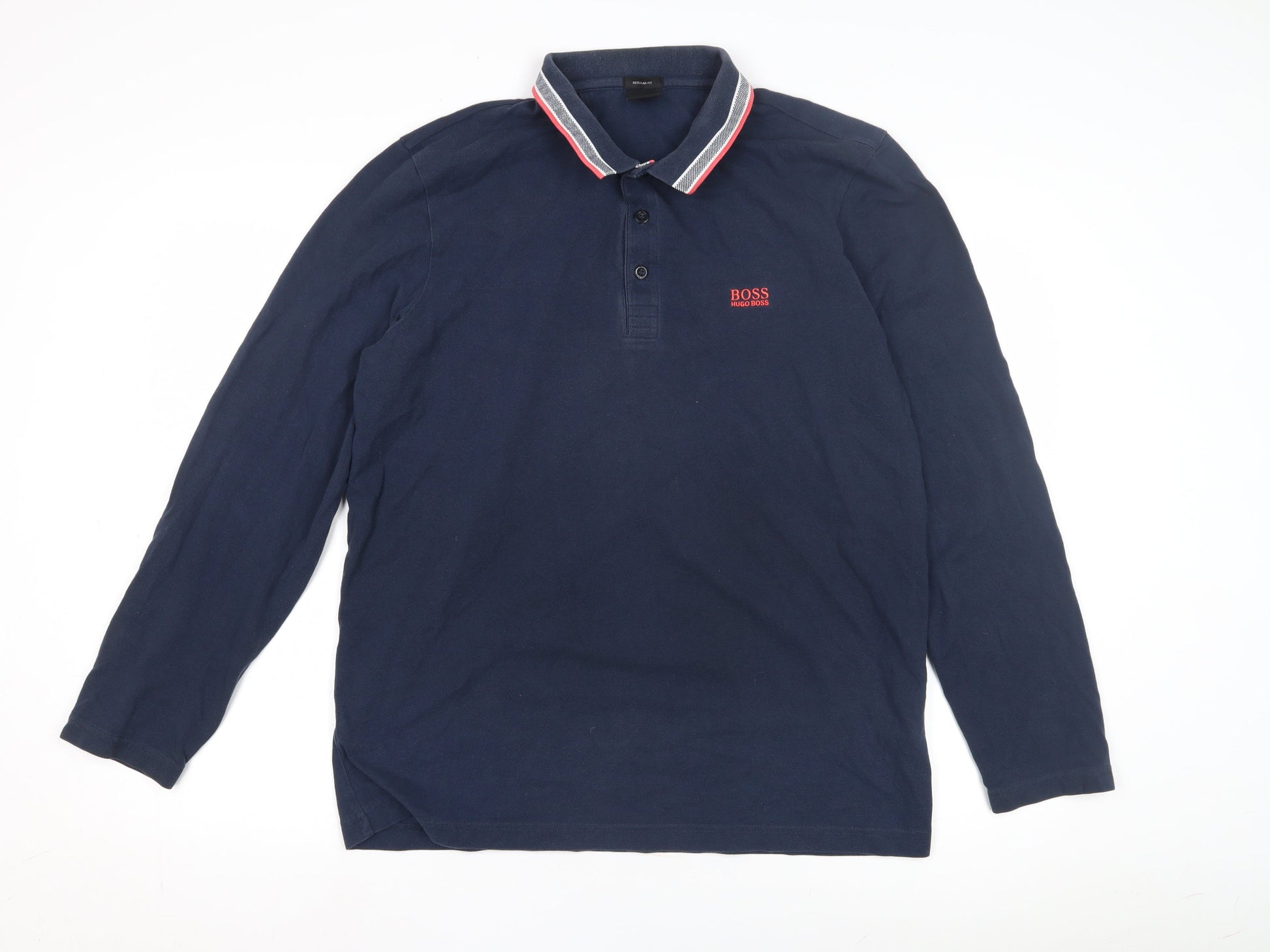 Hugo Boss Men's Blue XL Long Sleeve Polo Shirt