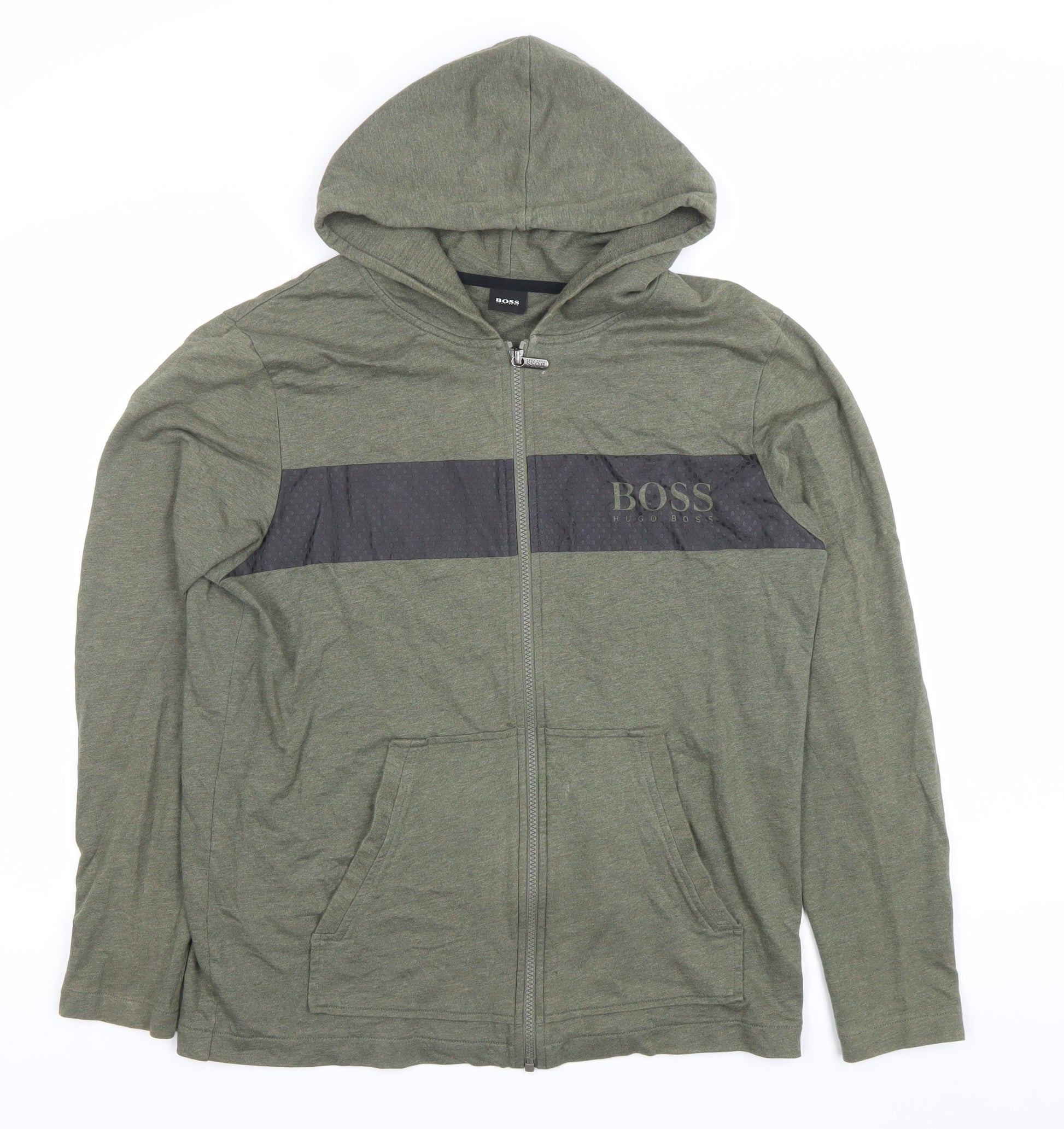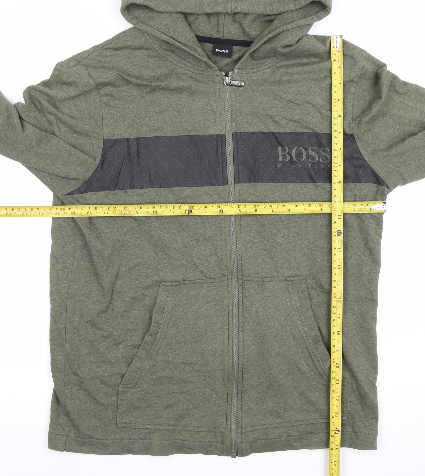 Hugo Boss Men's Green Full Zip Hoodie Size M Cotton Jersey