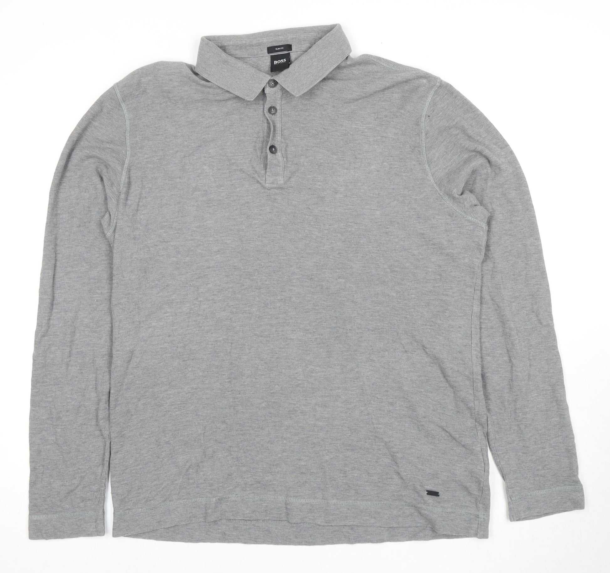 Hugo Boss Men's Grey 3XL Slim Fit Long Sleeve Polo