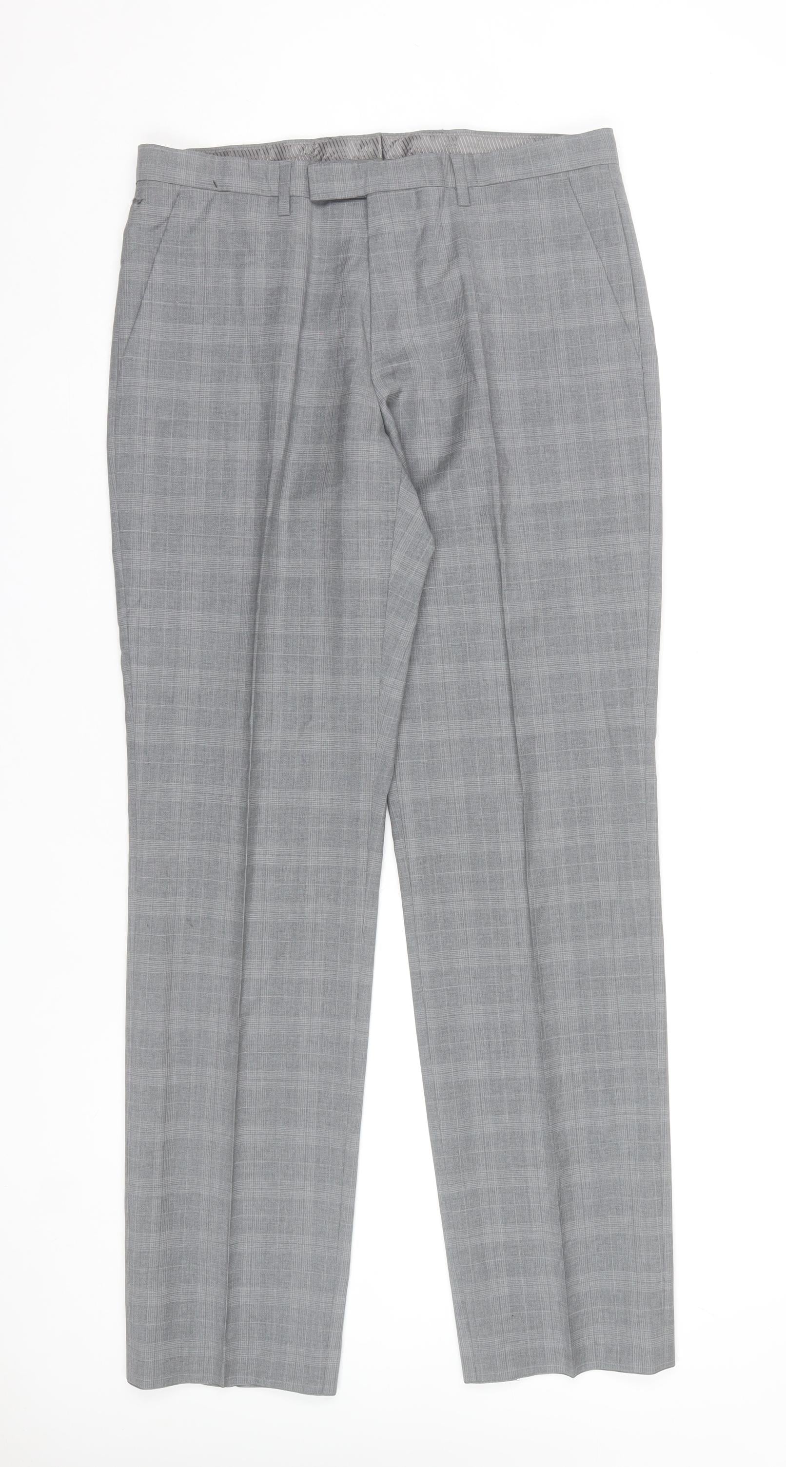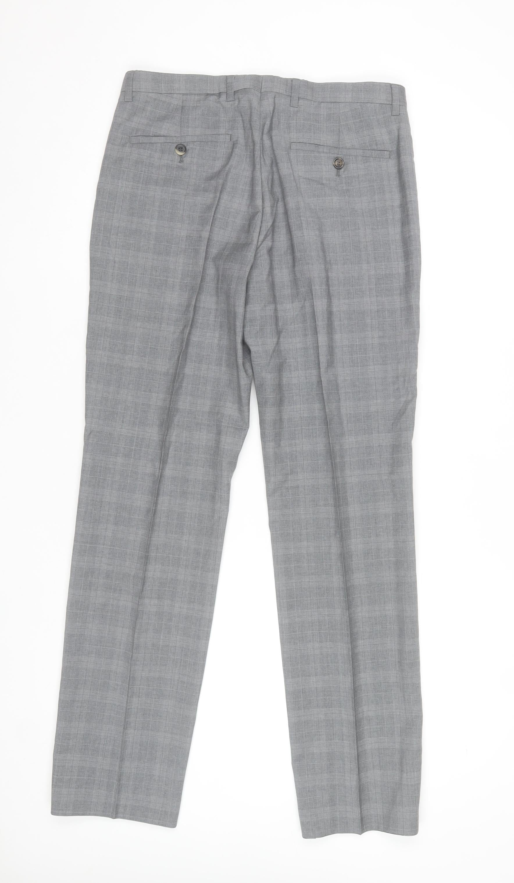 Hugo Boss Men's Grey Check Wool Dress Trousers Size 36R