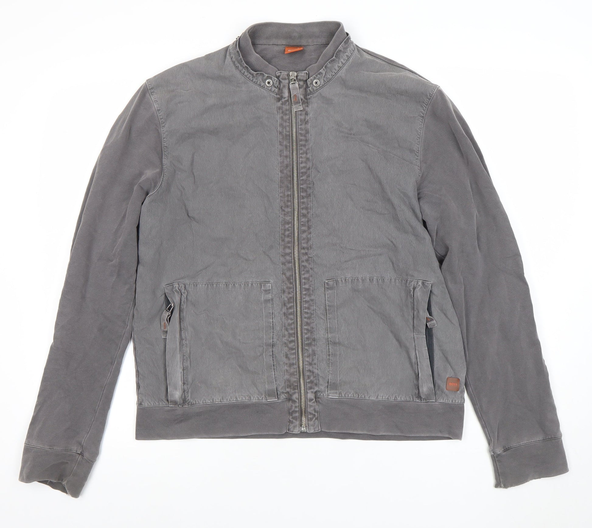 Hugo Boss Mens Grey Cotton Bomber Jacket Size M Casual Lightweight