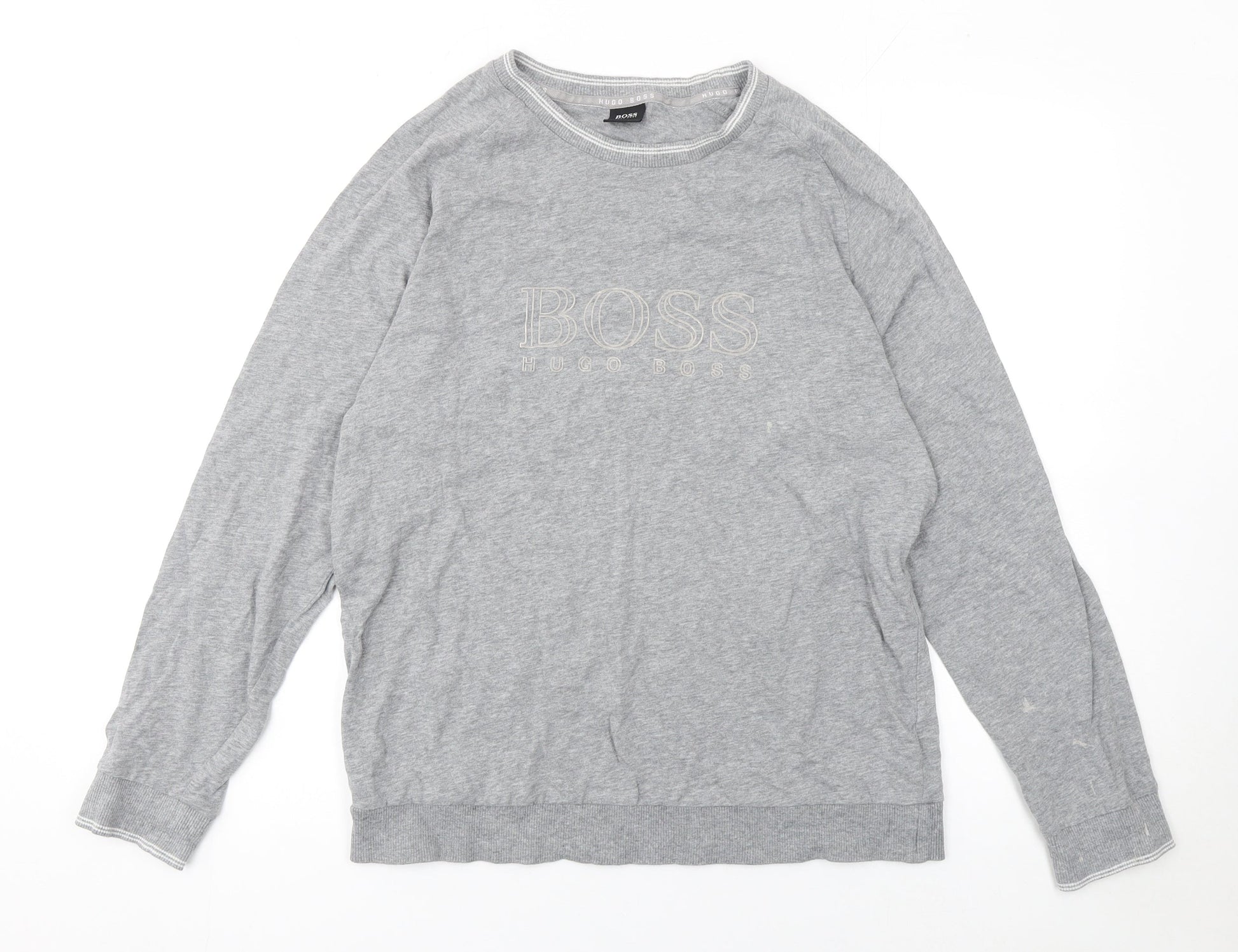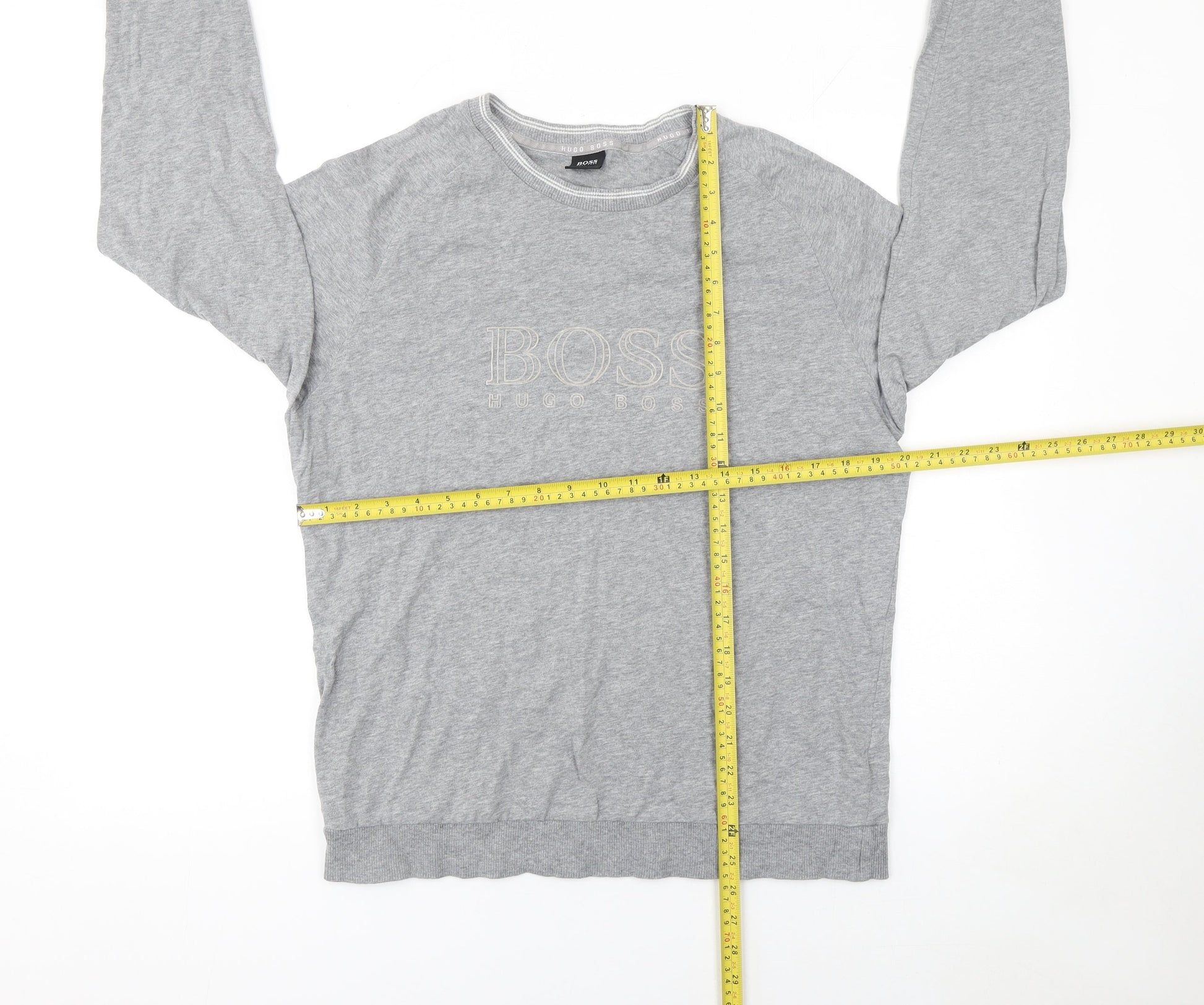 Hugo Boss Men's Grey Logo Cotton Pullover Sweatshirt Size L