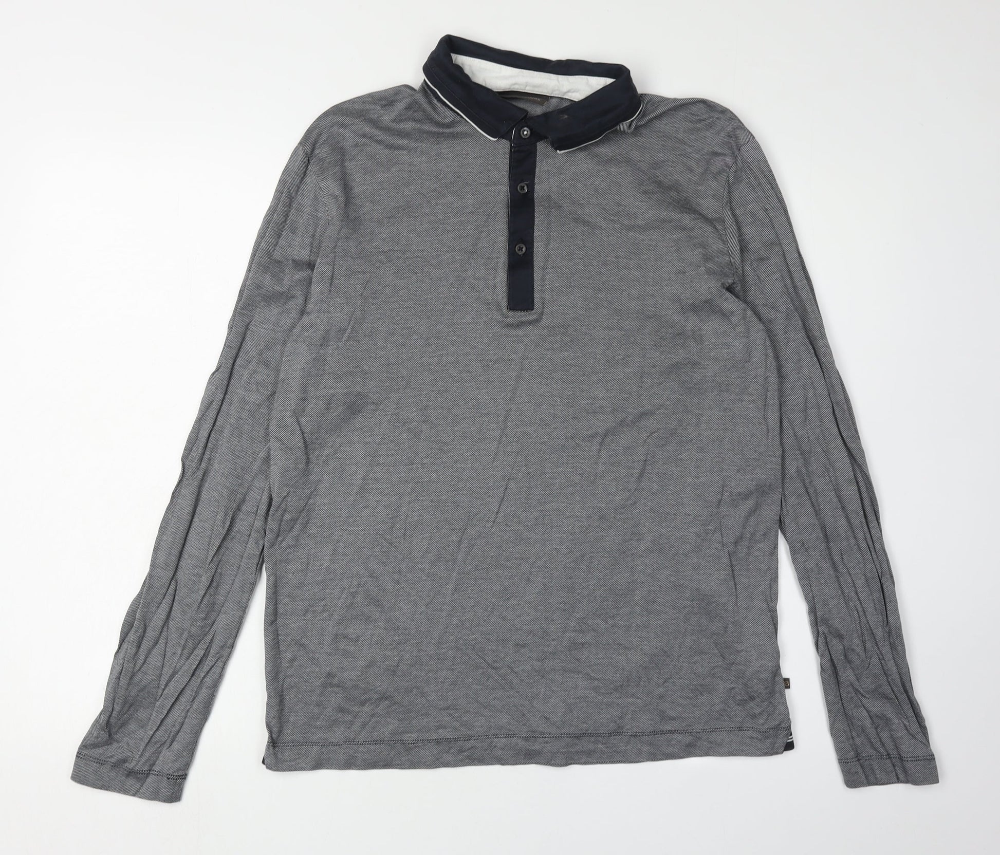 Hugo Boss Men's Grey Long Sleeve Polo, Size L