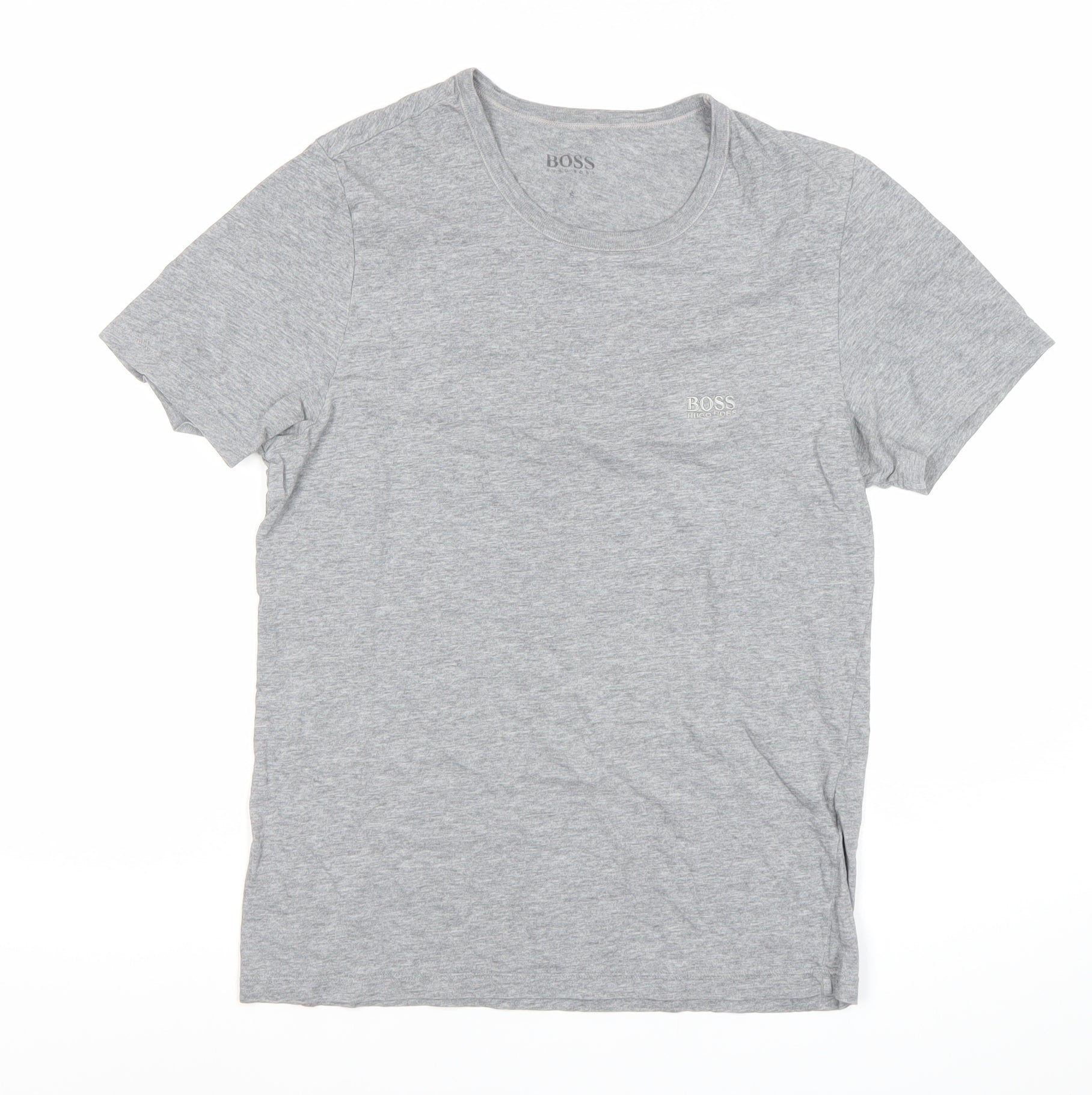 Hugo Boss Men's Grey Small Regular Fit Cotton Logo T-Shirt