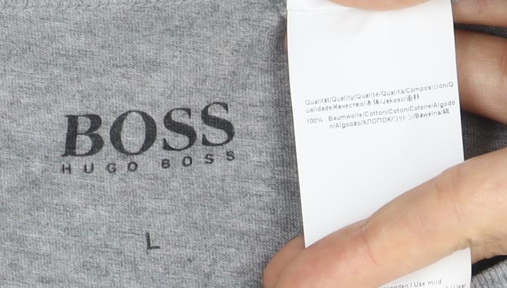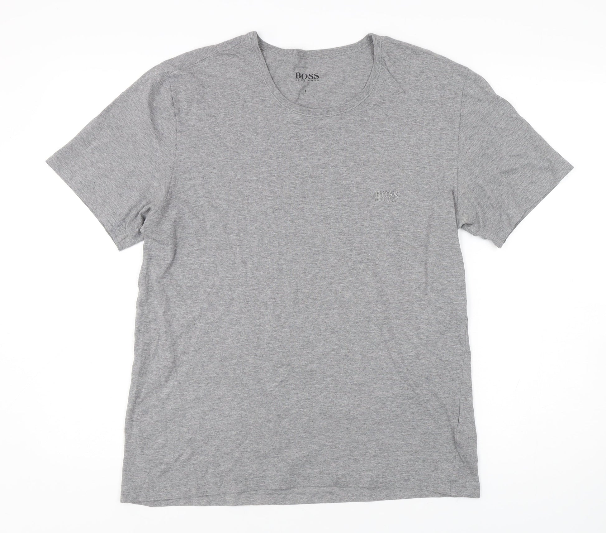 Hugo Boss Men's Grey T-Shirt, Size L, Bamboo, Logo Accents