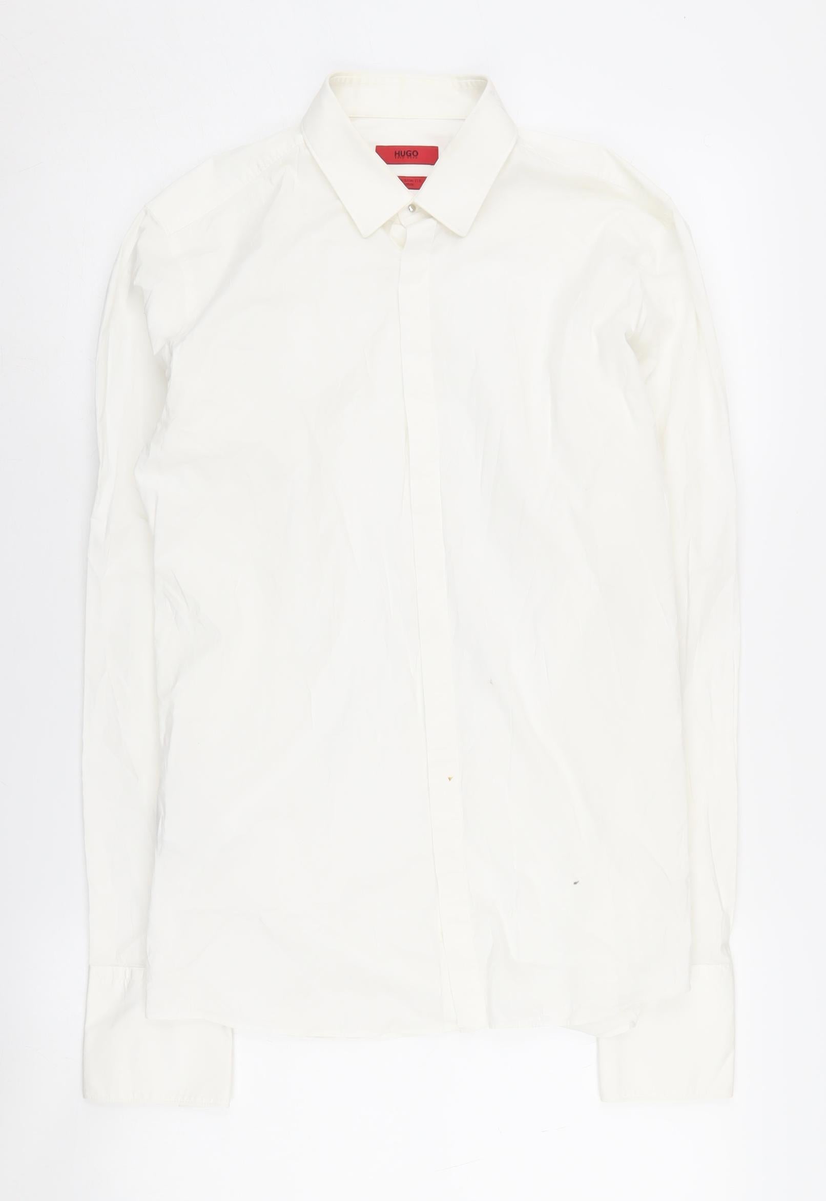 Hugo Boss Men's White Formal Dress Shirt 39 Extra Slim