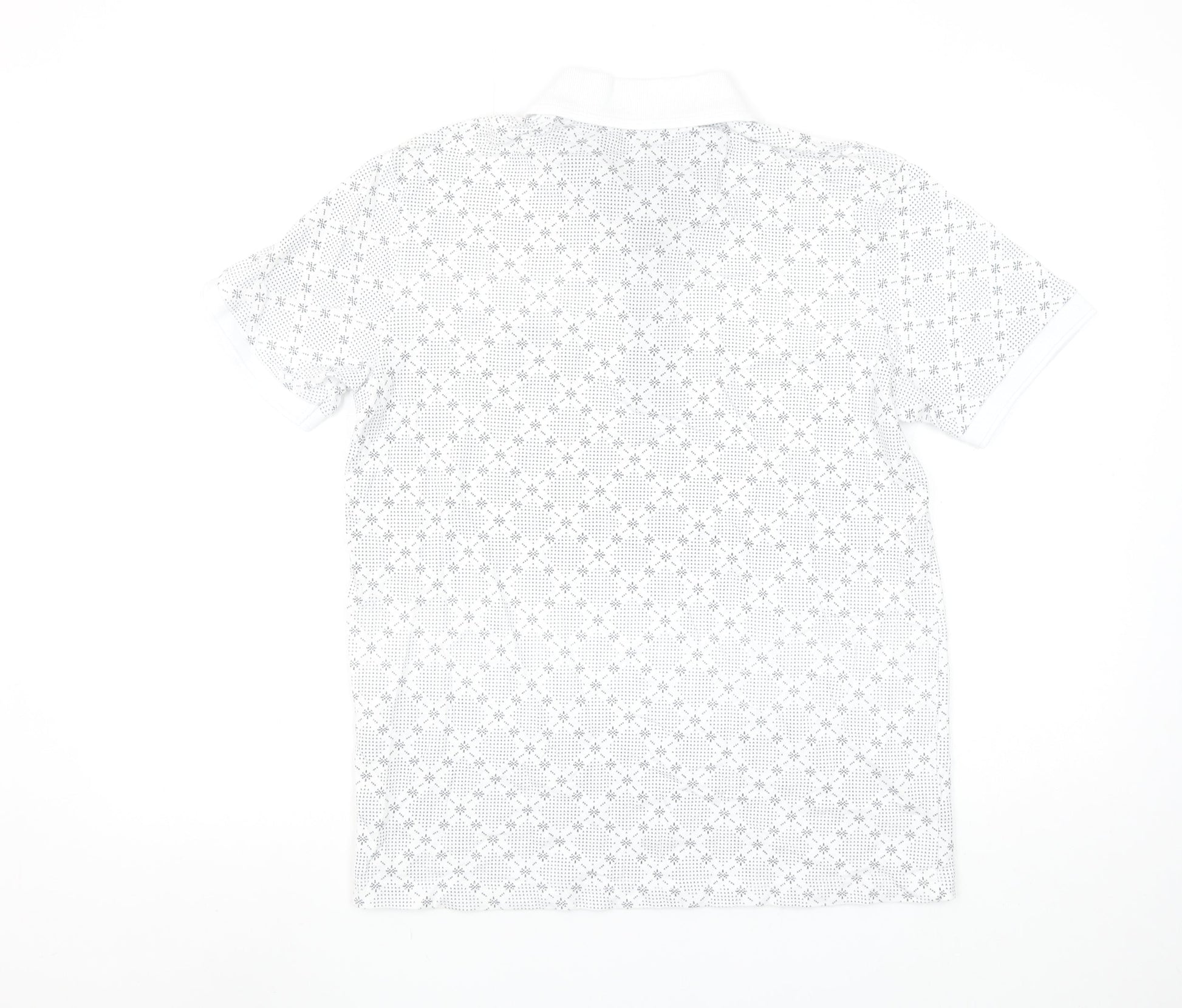 Hugo Boss Men's White Geometric Cotton Polo Shirt Size M