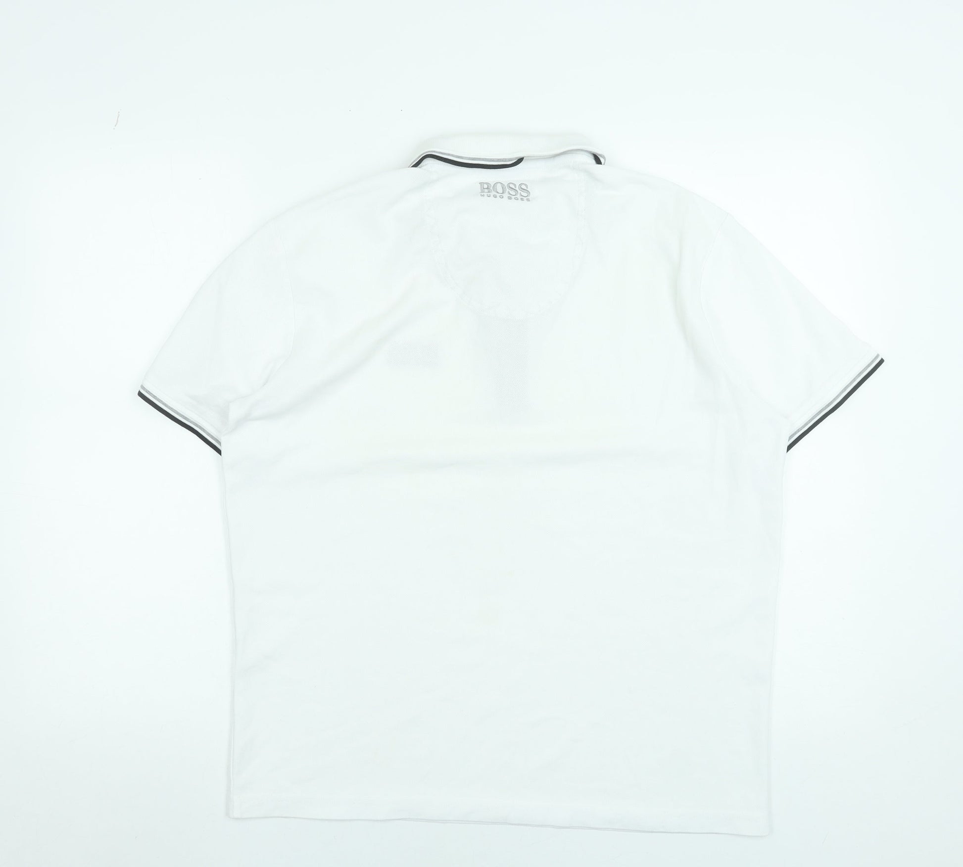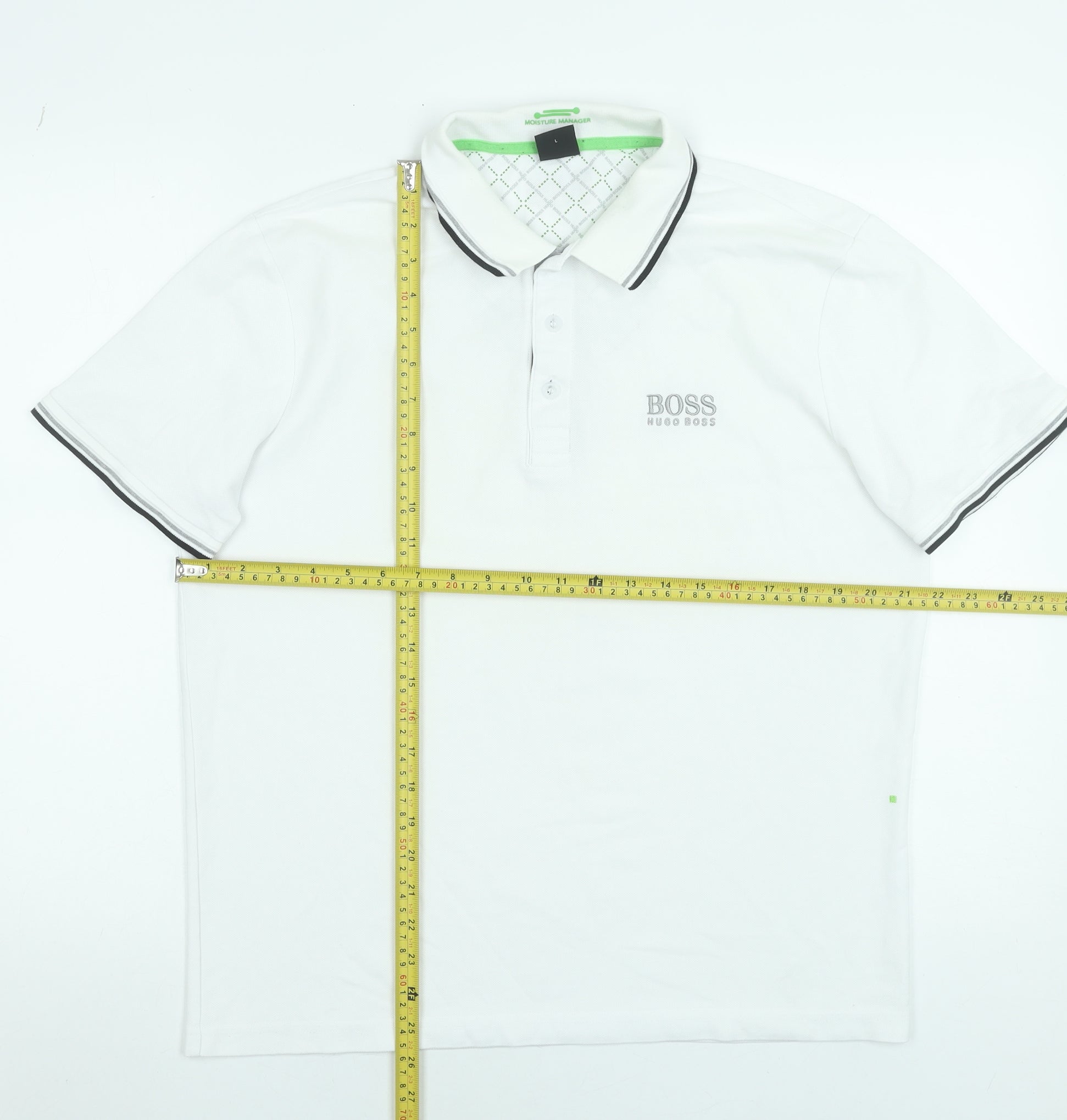 Hugo Boss Mens White Polo Shirt L Regular Fit Moisture Wicking Cotton