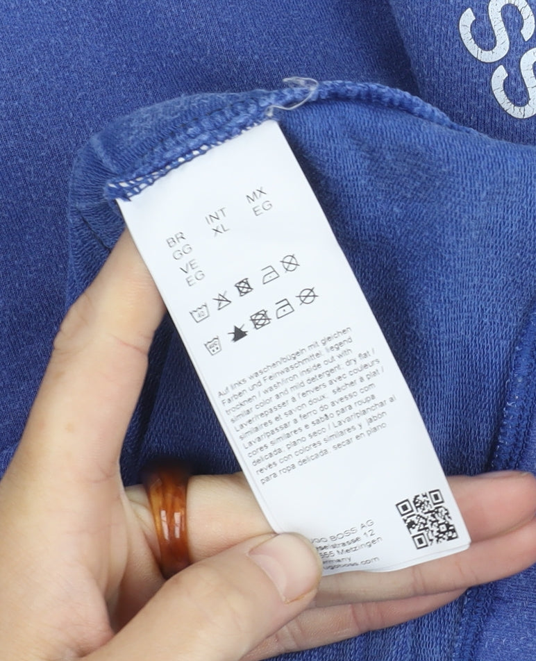 Hugo Boss Men's XL Blue Pullover Hoodie, Logo Accents