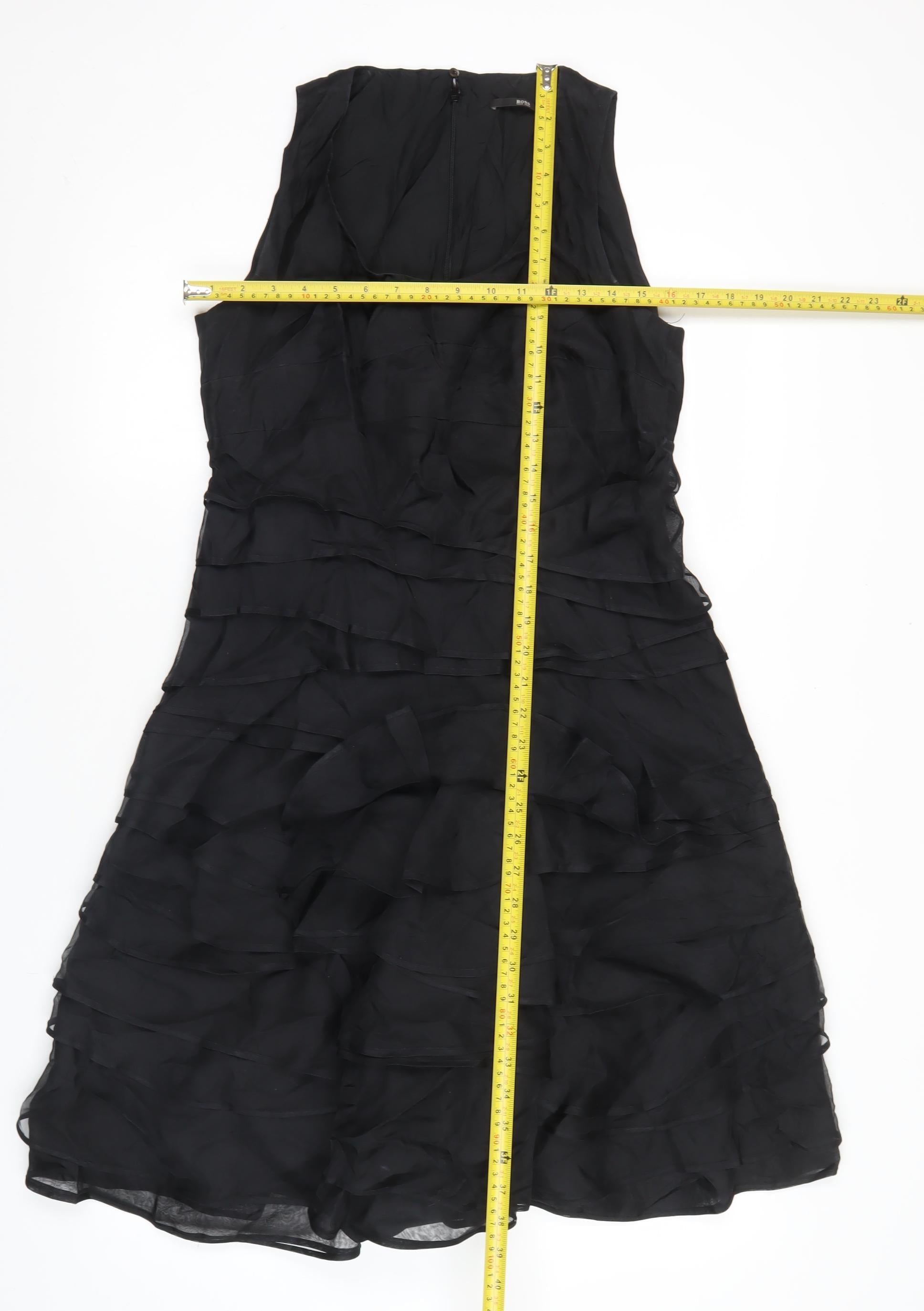 Hugo Boss Women Black Silk A-Line Ruffle Knee Length Dress UK 12