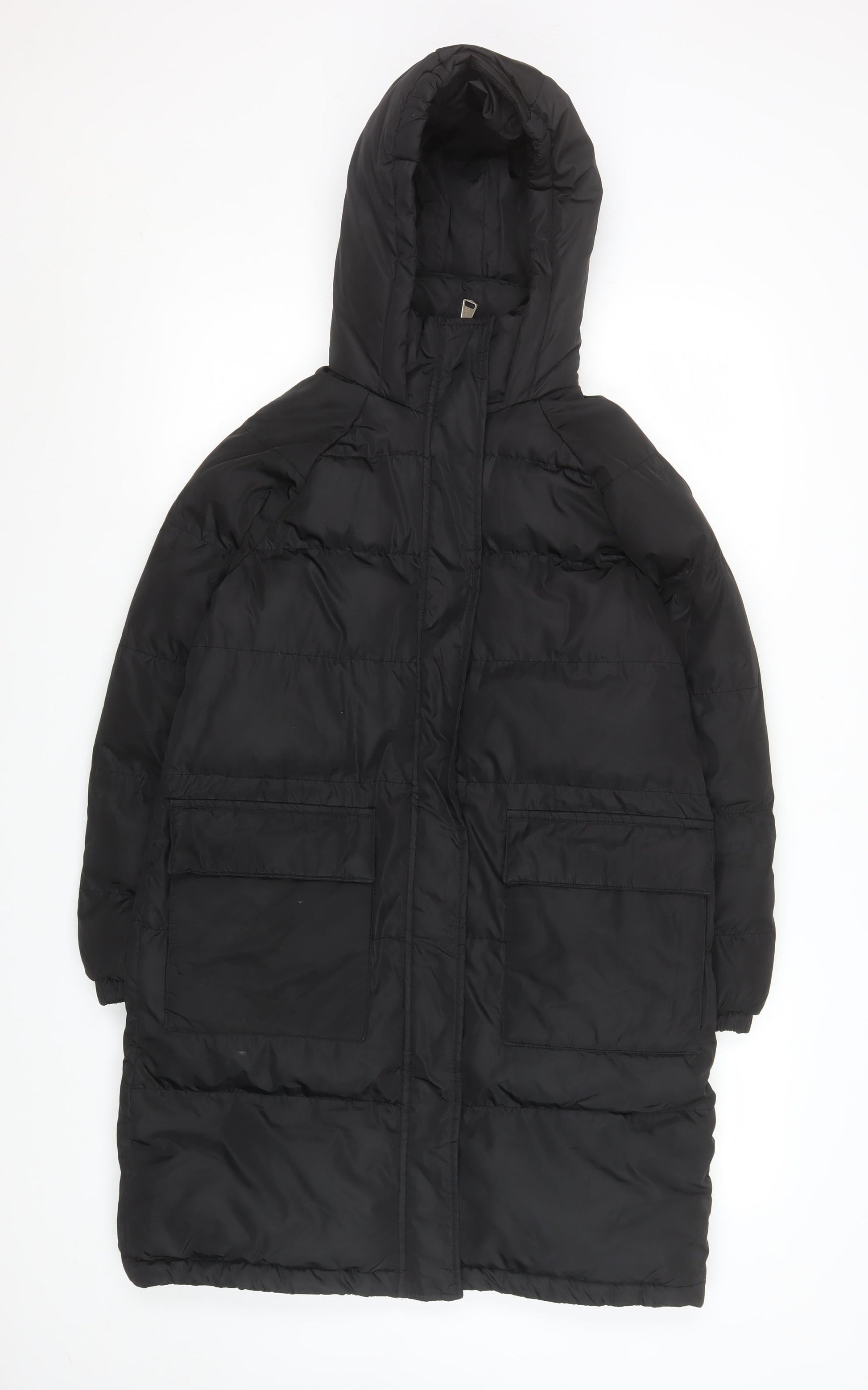 Hulabalu Womens Black Long Puffer Coat Size 12 Hooded Winter Jacket