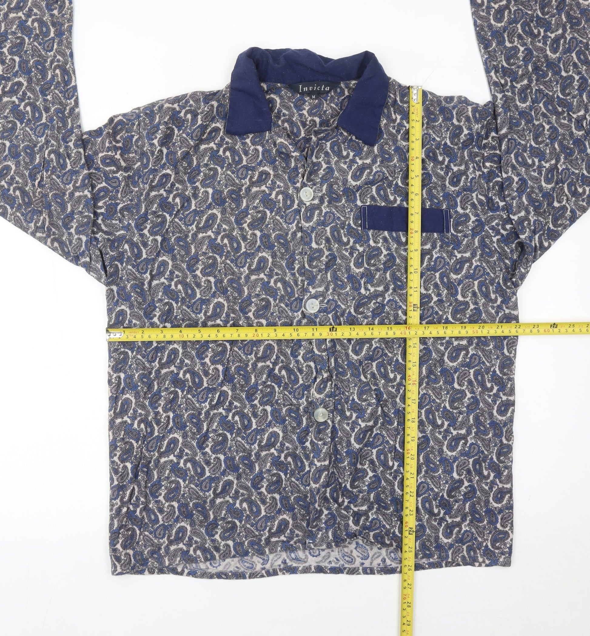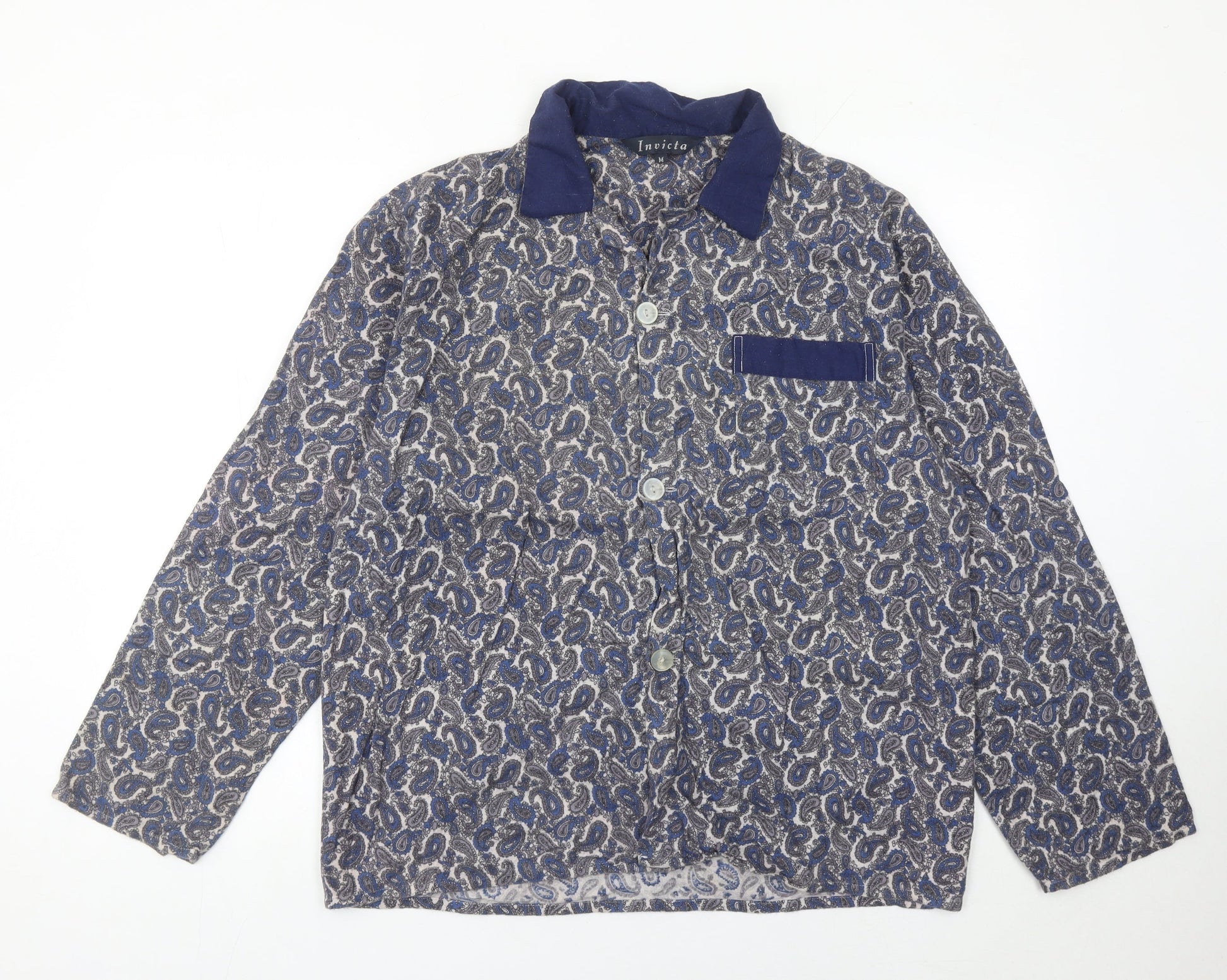 Invicta Womens Blue Paisley Collared Button-Up Shirt M