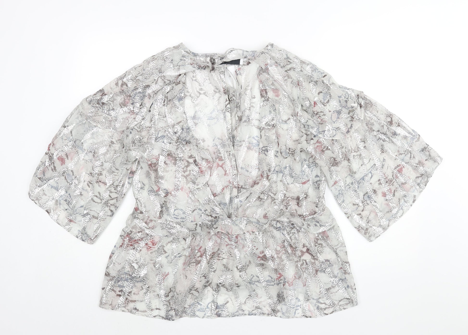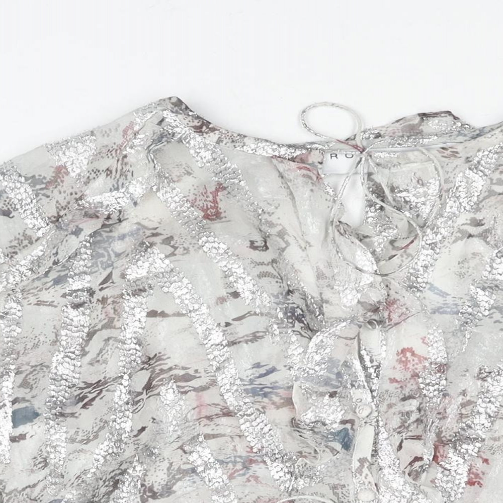 IRO Womens Silver Geometric Silk Basic Blouse Size 12 V-Neck - Frill