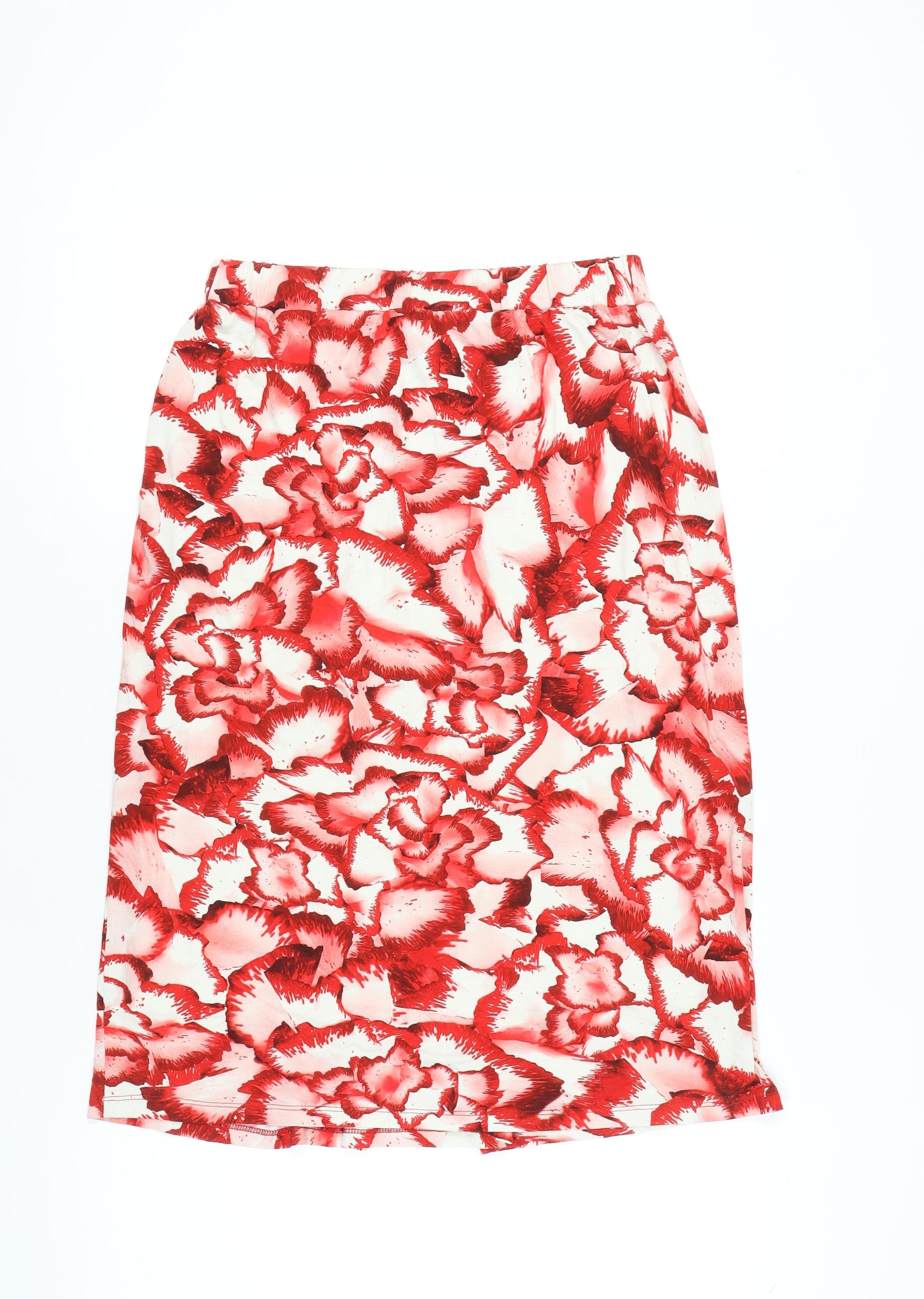 Isabel De Pedro Womens Red Floral Pencil Skirt Size 14 Stretch Knee Length