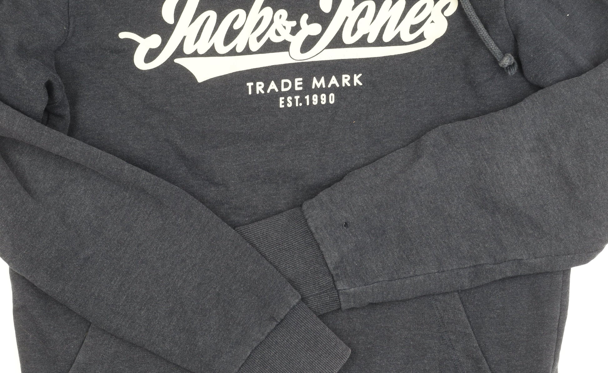 - Condition Notes: Visible small hole on the cuff and wear overall.
